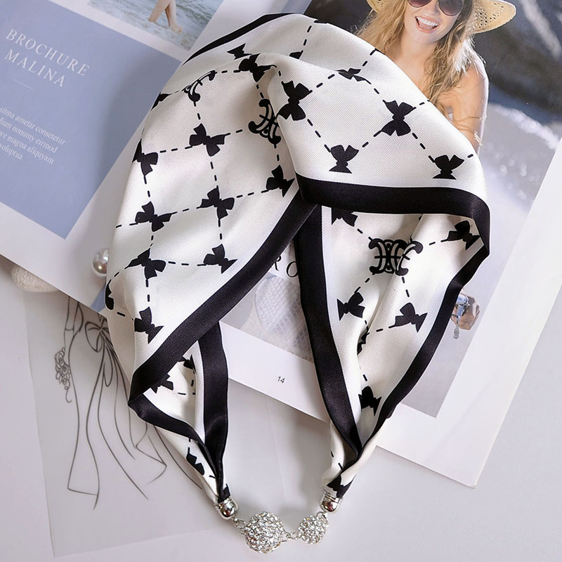 실크 스카프 헤어 밴드 마그네틱 버클 작은 긴 실크 스카프 헤어 밴드 타이 백 타이 손목 하이 엔드 모든 매치 얇은 좁은 한국 실크 스카프스토어 가기