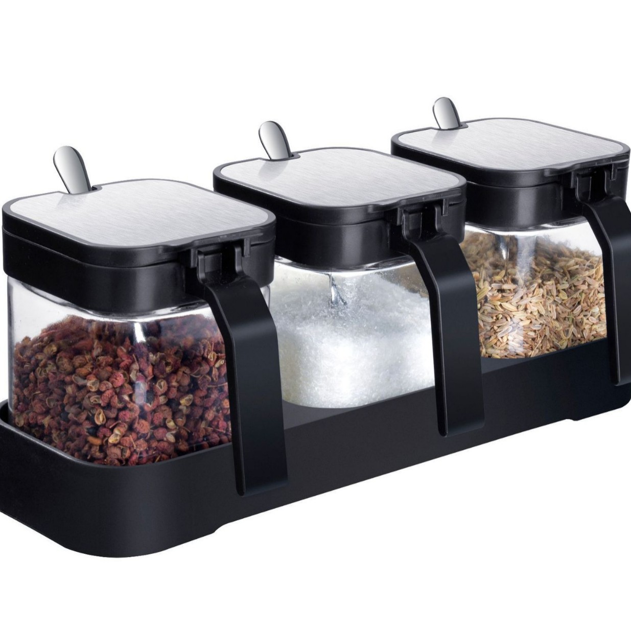 내열 유리 조미료 항아리 소금 항아리 조미료 병 손잡이 조미료 항아리 세트 숟가락 밀봉 방습 조미료 상자스토어 가기