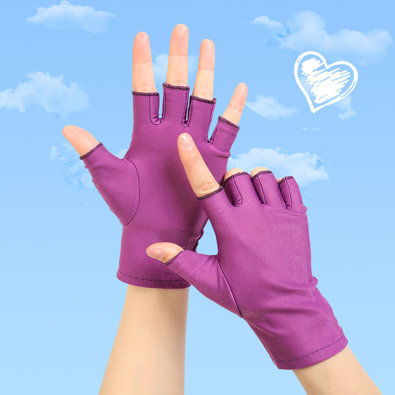 봄과 여름 얇은 반 손가락 태양 보호 장갑 단색 스판덱스 스트레치 반 손가락 장갑 짧은 성인 여성용 장갑