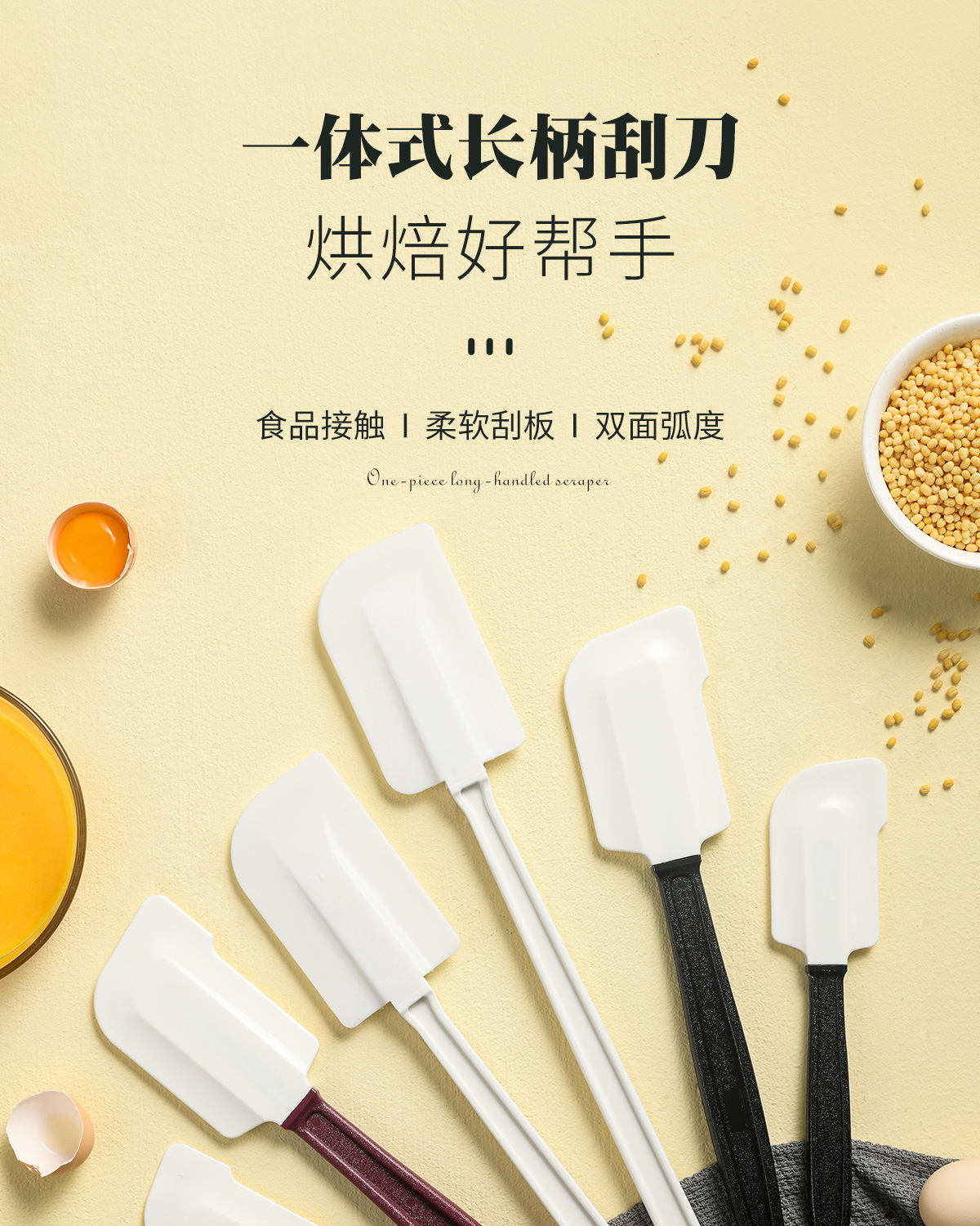 실리콘 소프트 스크레이퍼 대형 긴 손잡이 고무 식품 플라스틱 등급 케이크 크림 베이킹 도구 스크레이퍼 주걱