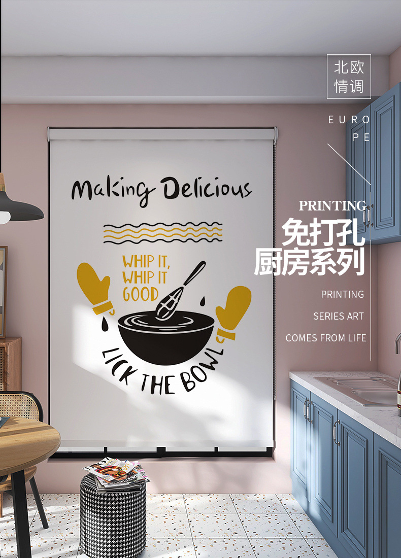 롤러 셔터 커튼 가정용 주방 펀치없는 창 차양 커튼 설치 방수 및 내유성 차양 차양 롤업
