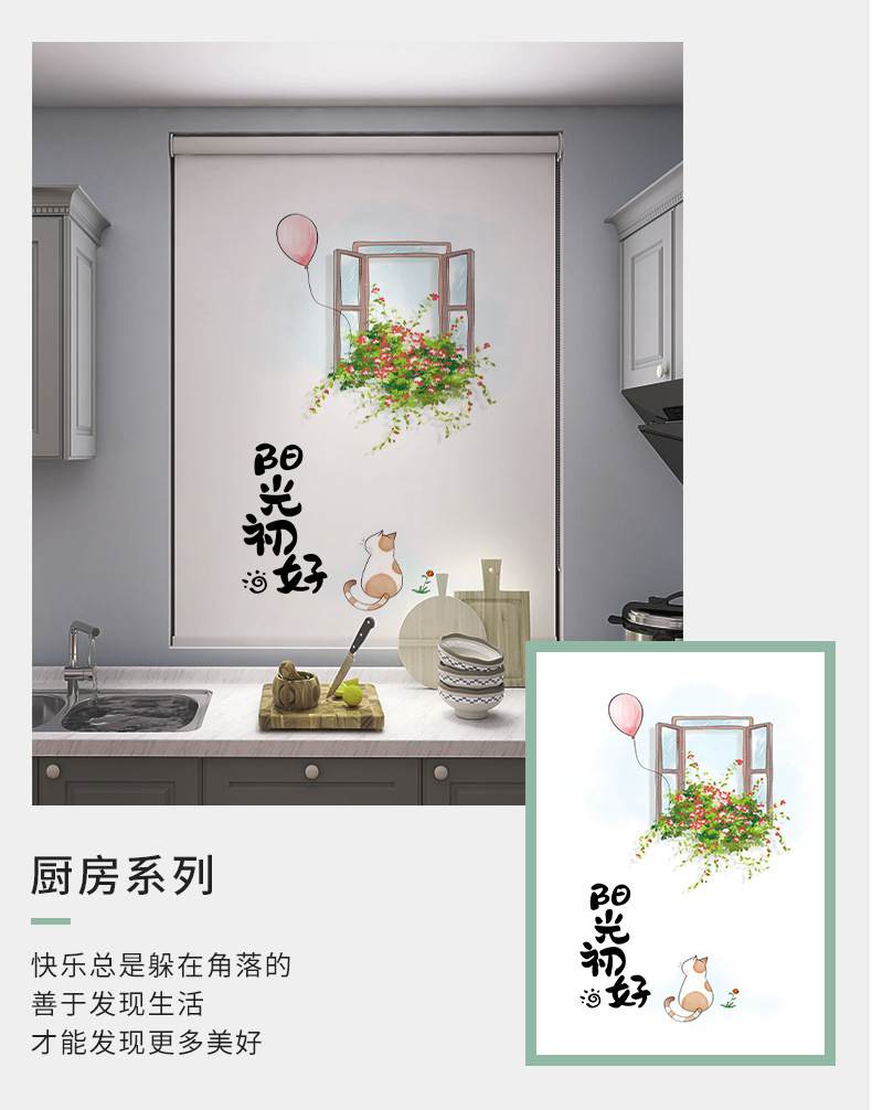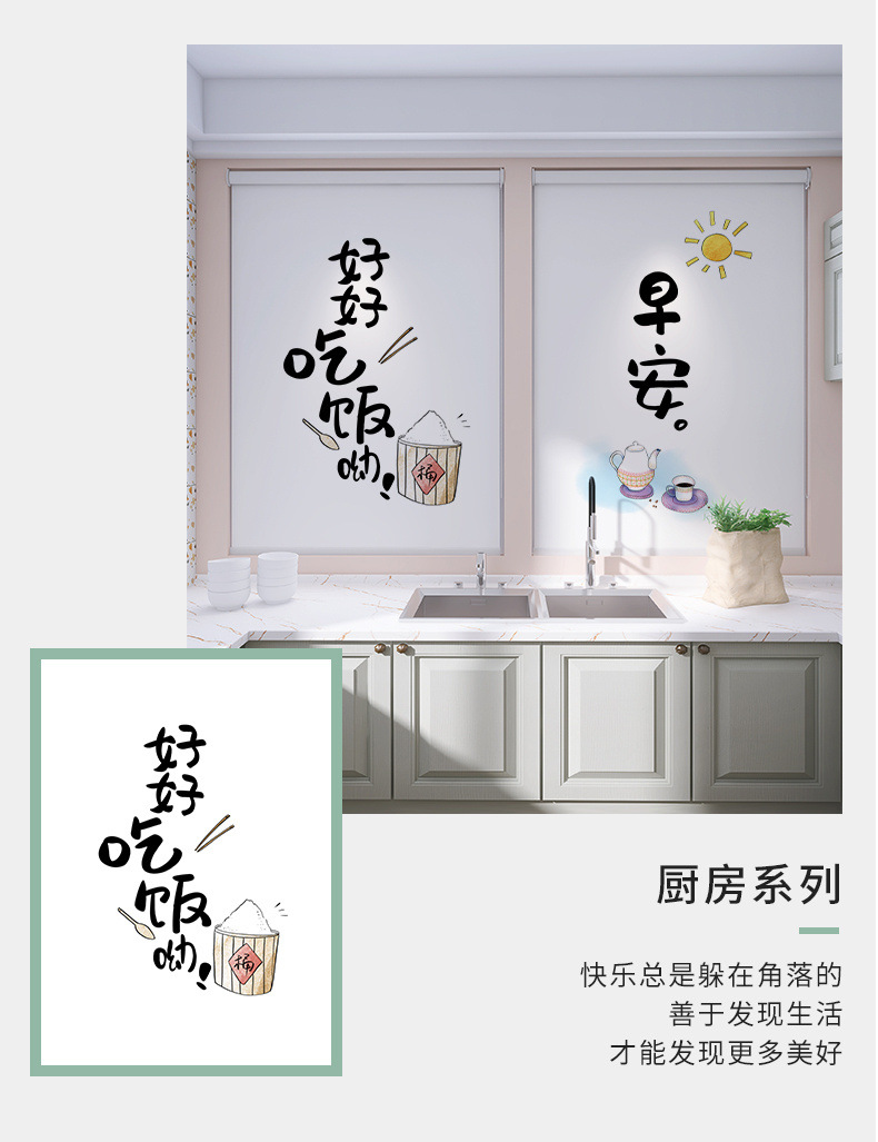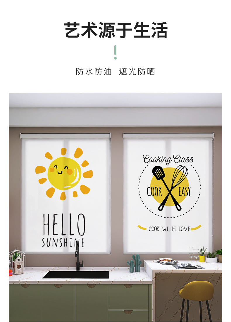 롤러 셔터 커튼 가정용 주방 펀치없는 창 차양 커튼 설치 방수 및 내유성 차양 차양 롤업스토어 가기