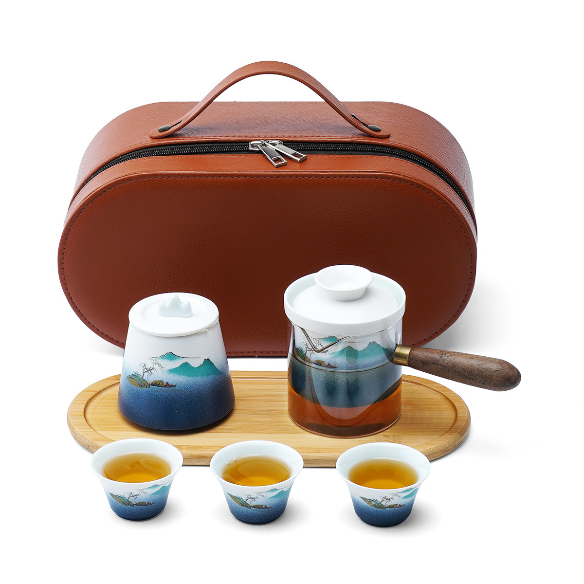 휴대용 여행 차 세트 세트 석기 쿵푸 차 컵 주전자 야외 가방 휴대용 빠른 컵 선물 도매스토어 가기