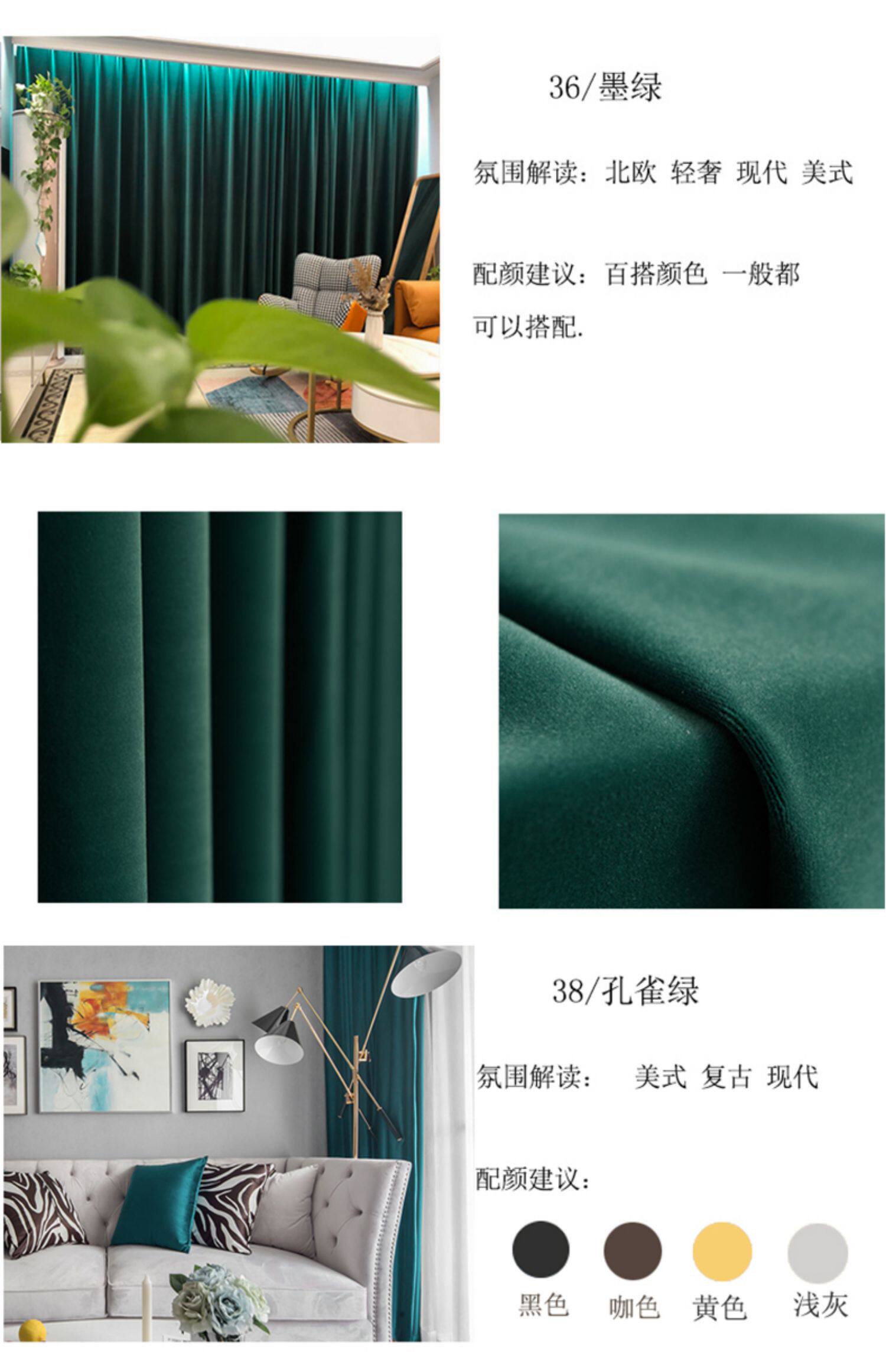 벨기에 음영 벨벳 올리브 그린 벨벳 거실 침실 어린이 방 심플 베이지 벨벳 커튼 샘플스토어 가기