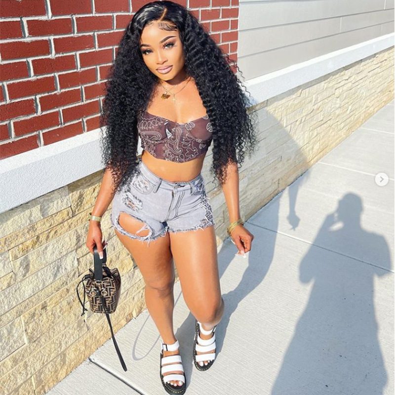 유럽과 미국 그물 빨간 부츠 바지 폭발 아마존 AliExpress 구멍 여성의 높은 탄성 대외 무역 데님 반바지 공장 재고스토어 가기