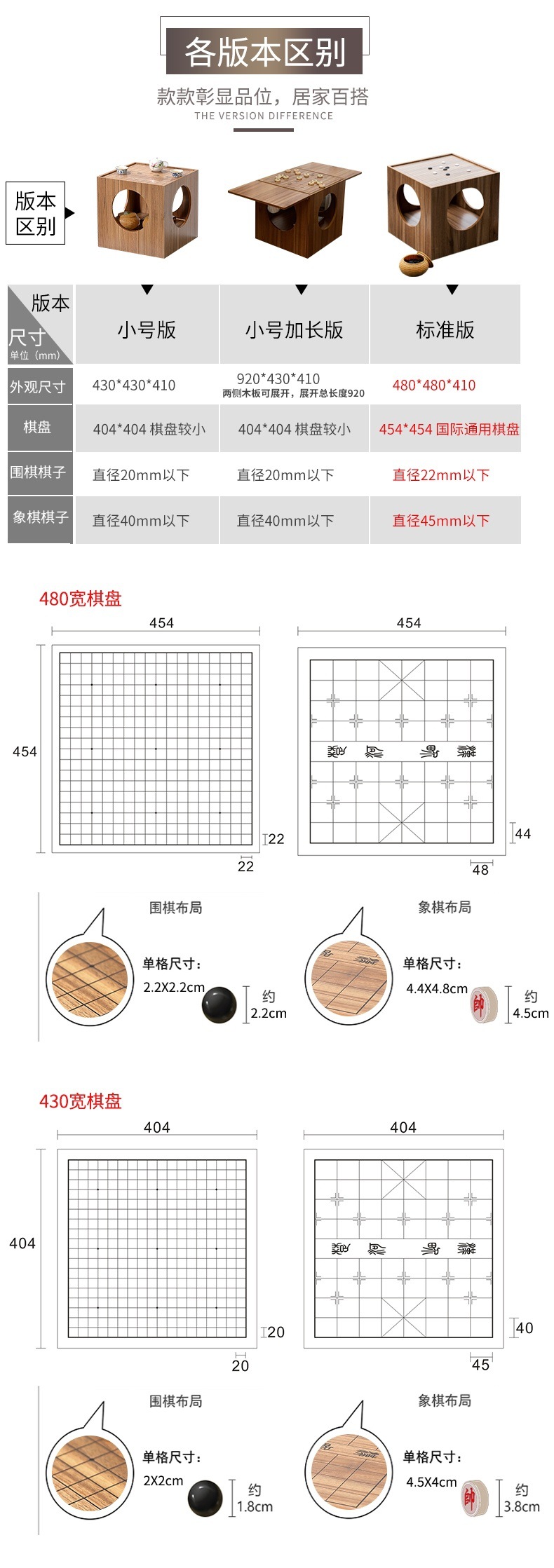 • 표준 확장 단일 테이블 (범용 체스 판) 9 36*480*410