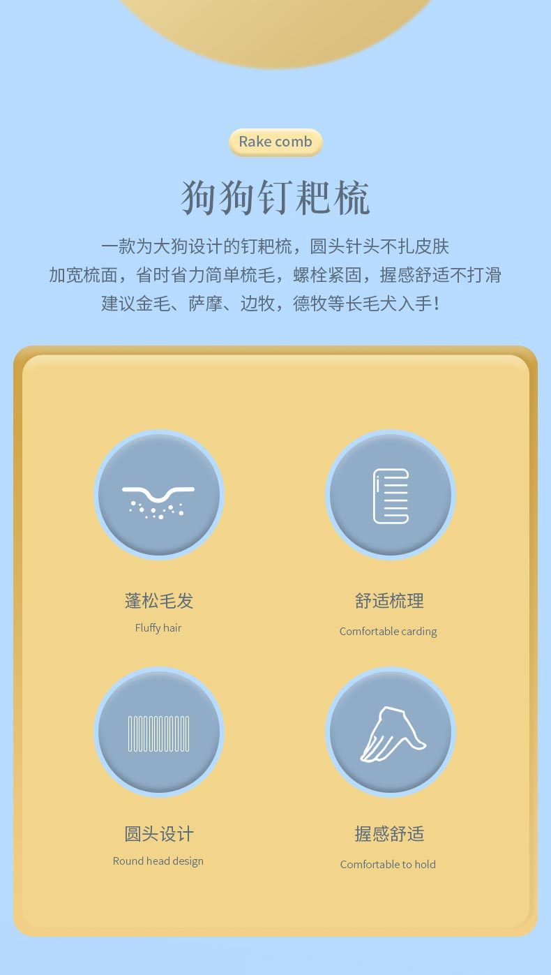 개 머리 브러시 머리 제거 빗 긴 머리 알래스카 국경 목가적 인 황금 머리 큰 개 갈퀴 빗 브러시