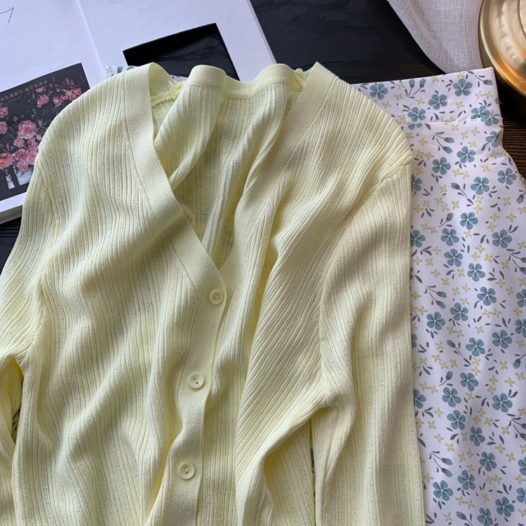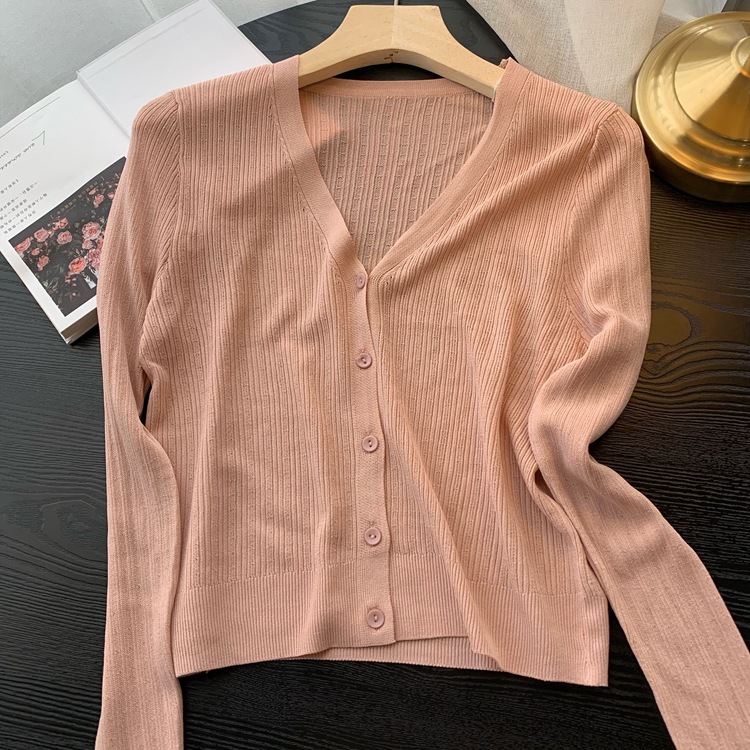 피부 친화적이고 부드러운 2024 새로운 겨자 얇은 스웨터 여성 여름 짧은 부드러운 태양 보호 얼음 실크 카디건 재킷스토어 가기