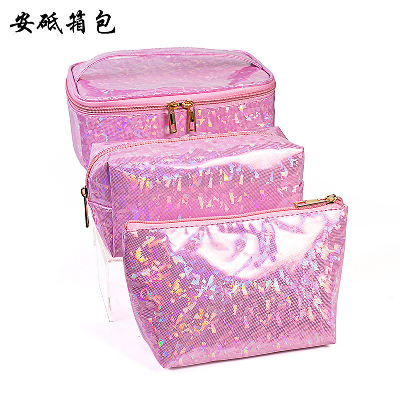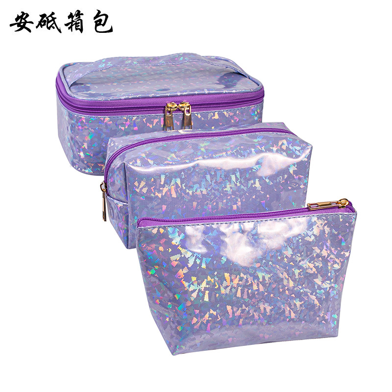 크로스 보더 새로운 레이저 휴대용 화장품 가방 대용량 화장품 보관 가방 휴대용 여행 가방 머리카락을위한 세척 가방스토어 가기