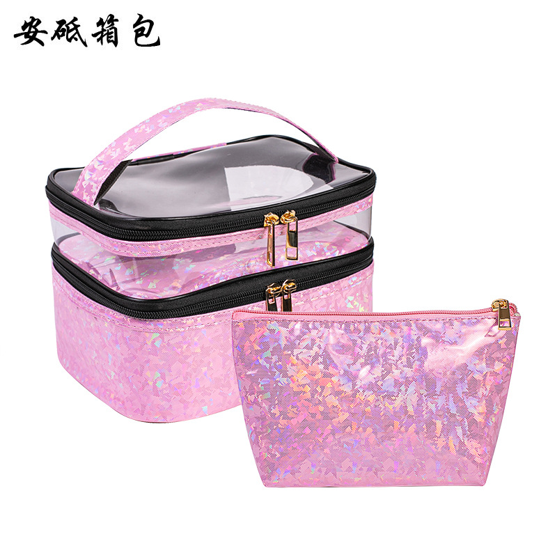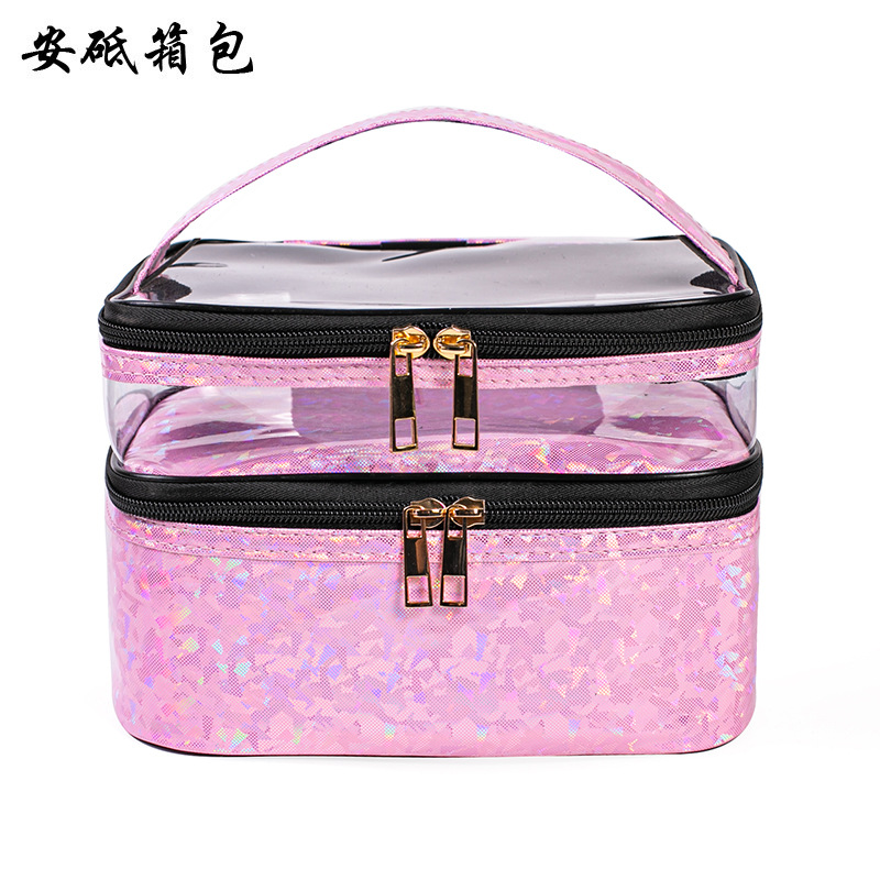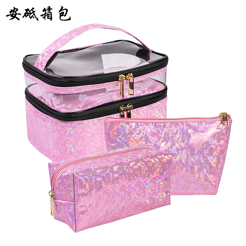 크로스 보더 새로운 레이저 휴대용 화장품 가방 대용량 화장품 보관 가방 휴대용 여행 가방 머리카락을위한 세척 가방