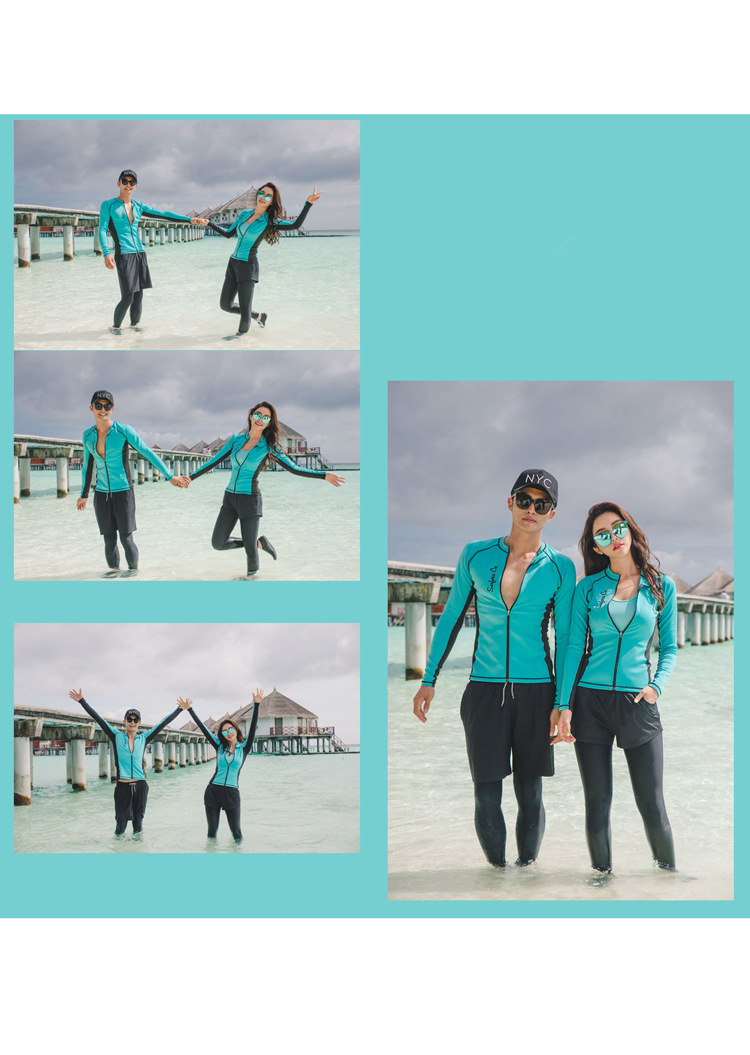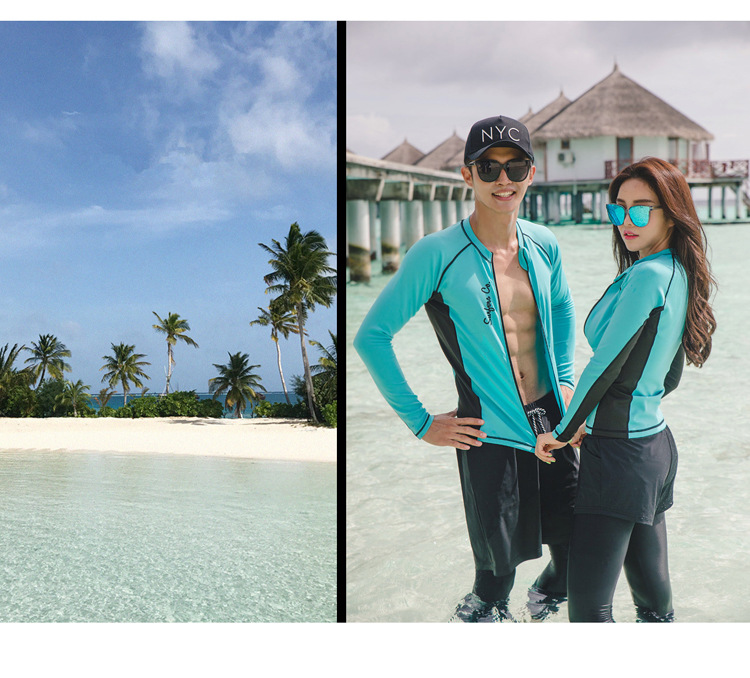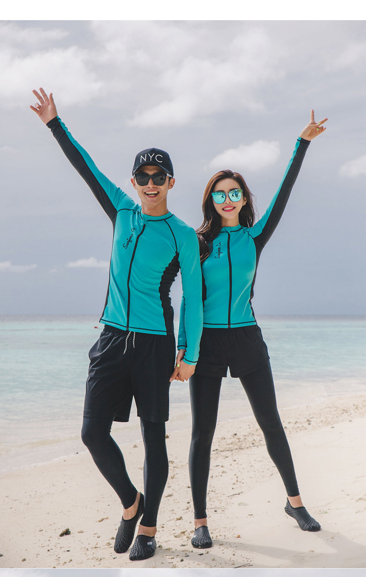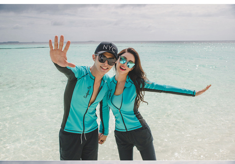 새로운 한국 분할 다이빙 세트 속건 지퍼 자외선 차단제 해파리 긴 소매 수영복 서핑 세트 세트 커플