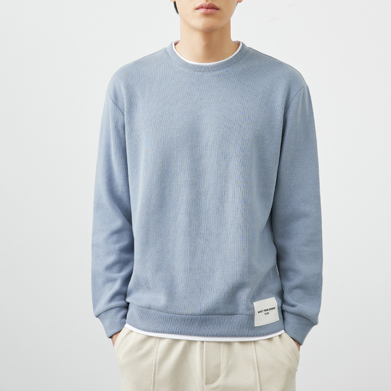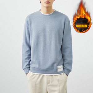 단색 페이크 투피스 라운드넥 플리스 스웨트셔츠 남성용 2025 가을 겨울 신상 트렌디 다용도 베이스 셔츠 긴팔 남성복스토어 가기