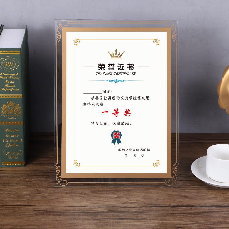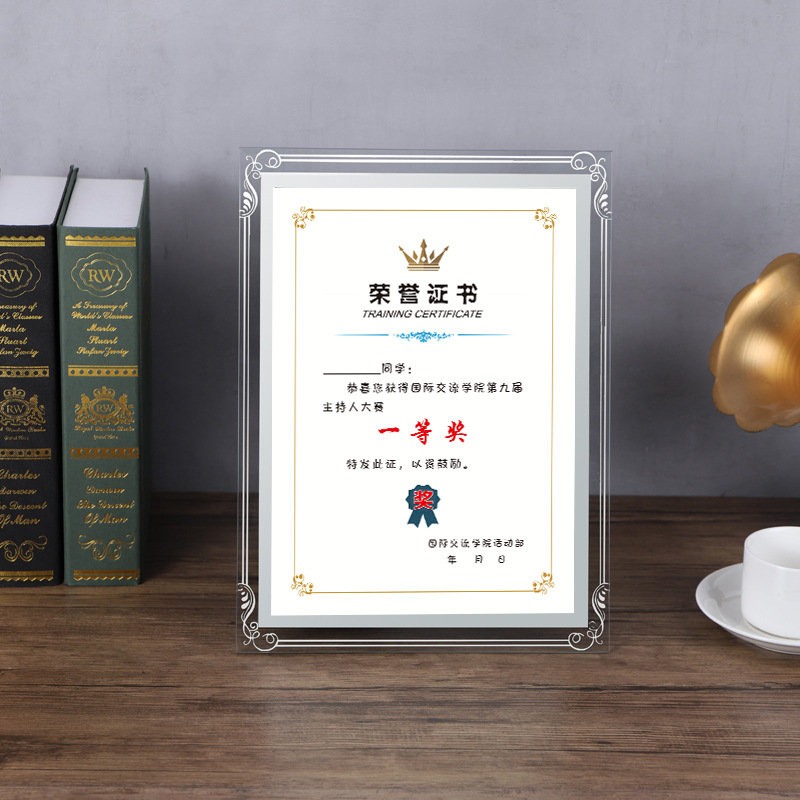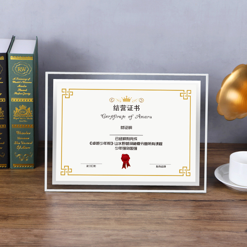 크리스탈 유리 사진 프레임 테이블 내부 페이지 인쇄 명예 프레임 벽걸이 공로증 액자 진열대 주문 공인 인증서스토어 가기