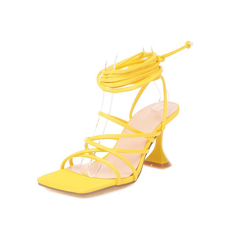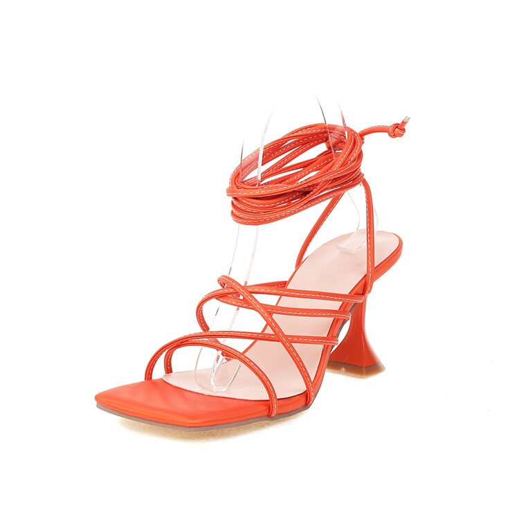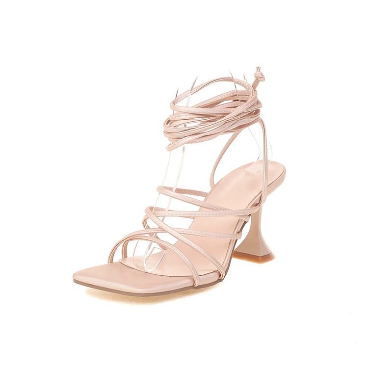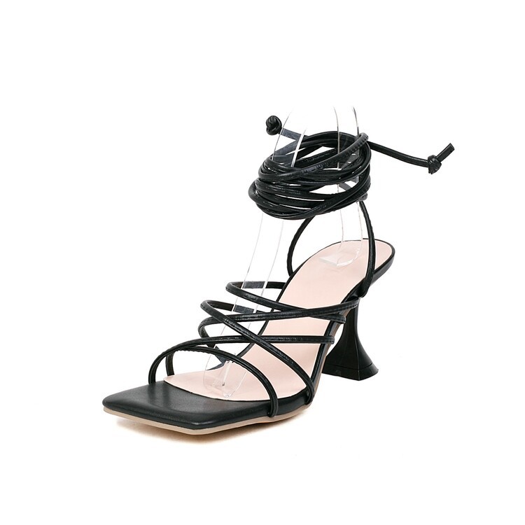 소원 아마존 크로스 국경 대외 무역 대형 신발 여성용 여름 새로운 고급 힐 하이힐 샌들 스퀘어 토 스트랩 로마 신발