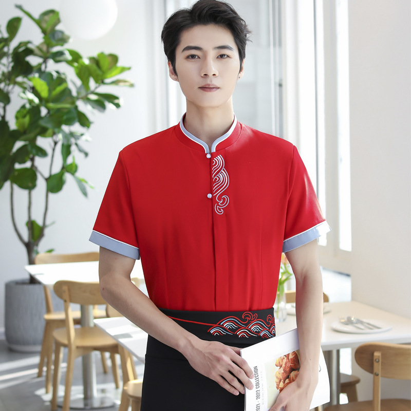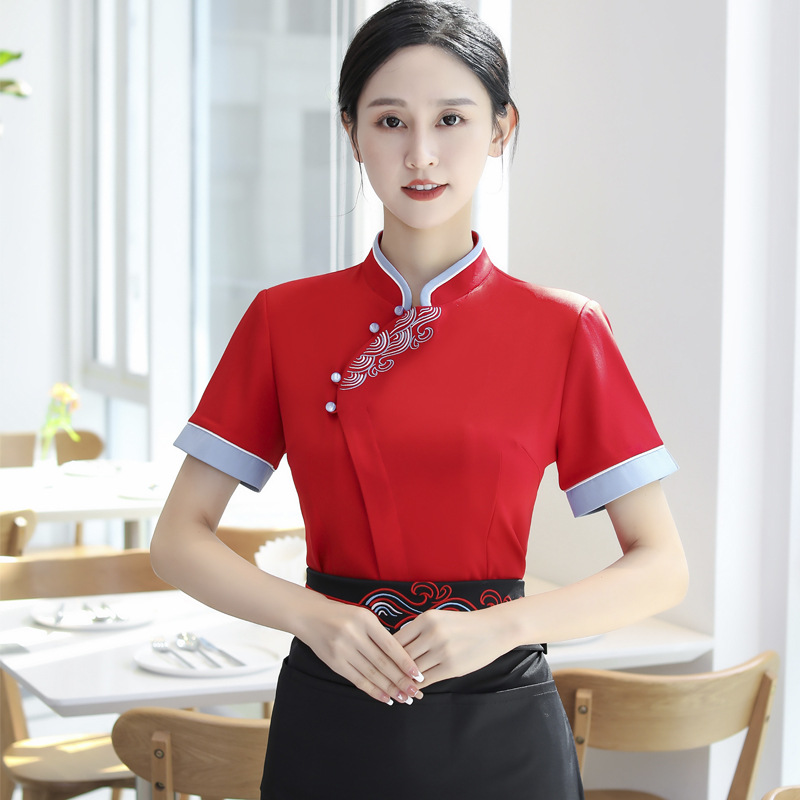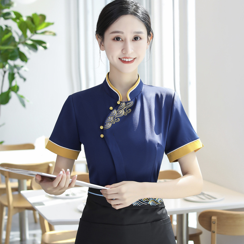 호텔 작업복 여름 옷 여자의 중국 레스토랑 취사 찻집 냄비 호텔 농가 웨이터 반팔 도구 새로운스토어 가기