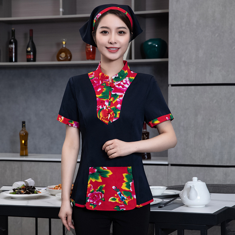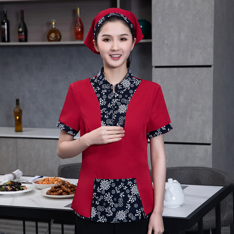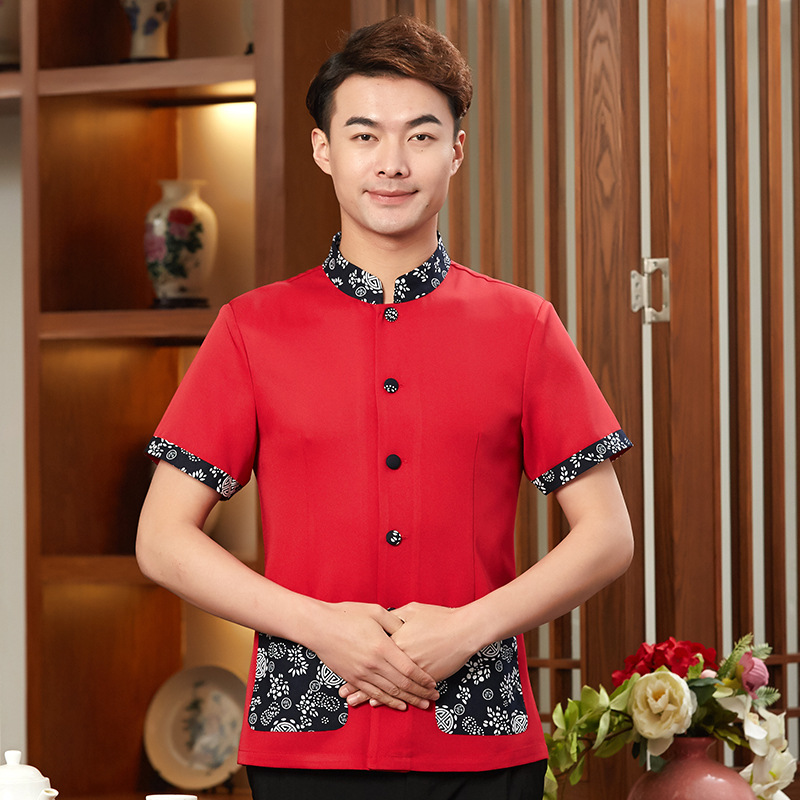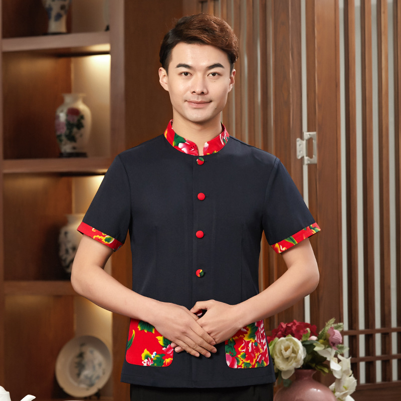 여름 농가 작업복 남성과 여성의 반팔 호텔 케이터링 냄비 레스토랑 중국 복고풍 레스토랑 웨이터 New스토어 가기