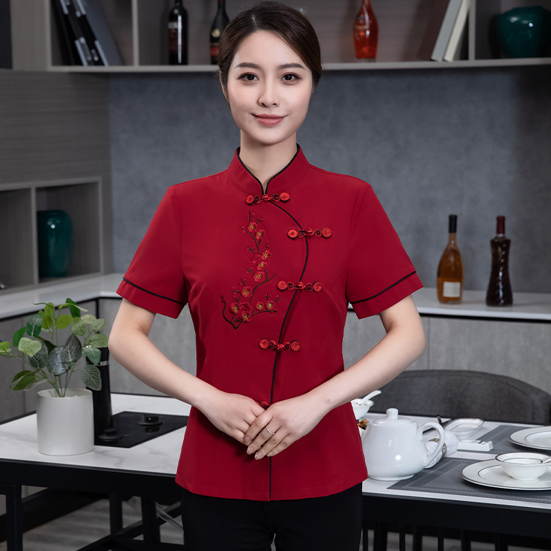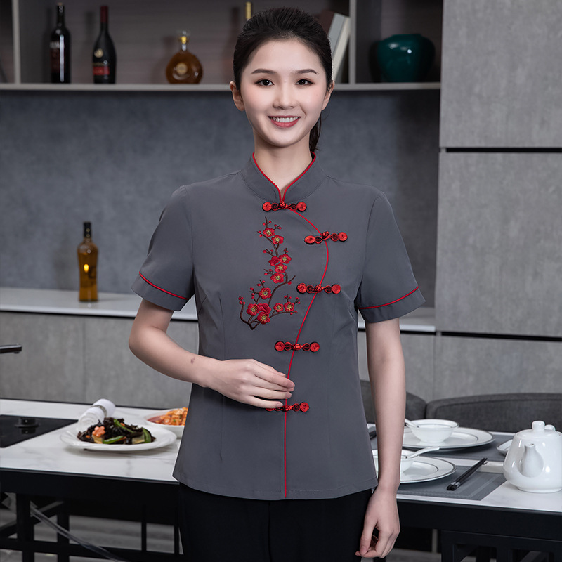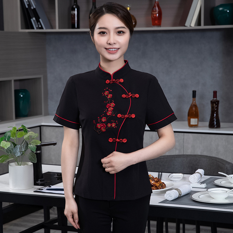 레스토랑 웨이터 작업복 여성 여름 중국 호텔 취사 냄비 레스토랑 레스토랑 찻집 반소매 의류 세트스토어 가기