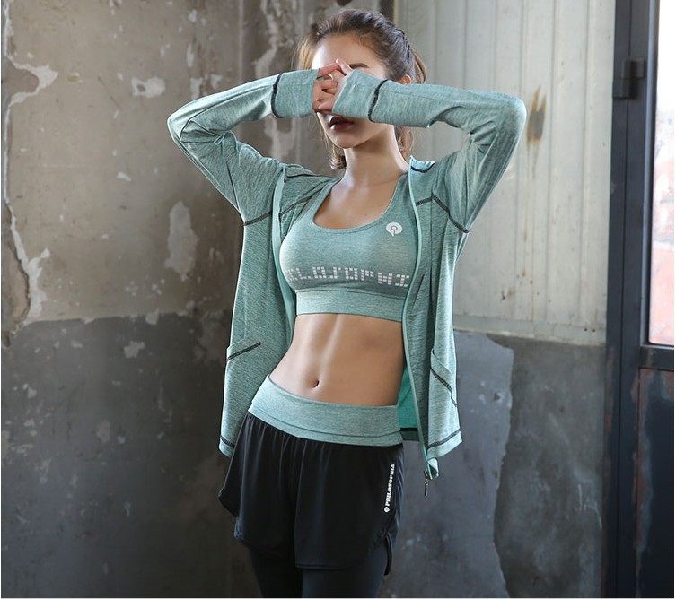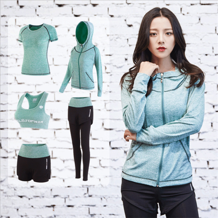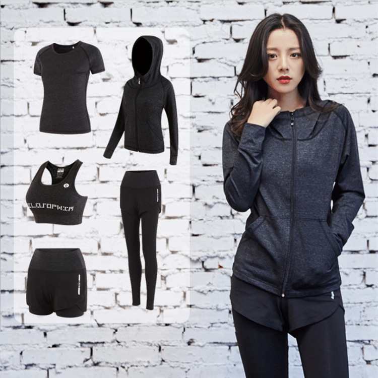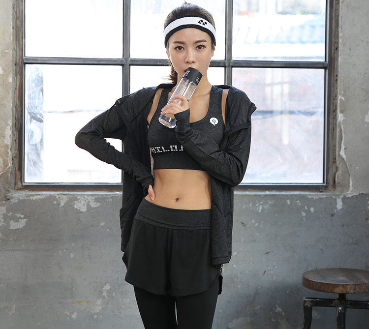세트 여자 체육관 전문 가짜 투피스 스포츠 가을과 겨울 속건 고급 핑크 요가 의류 세트 여성