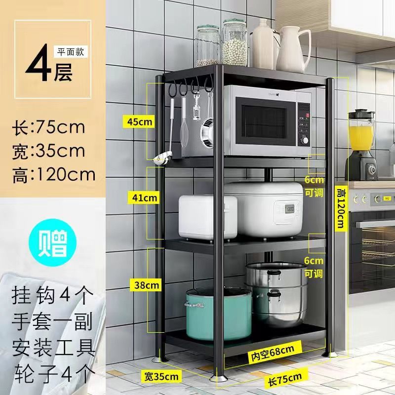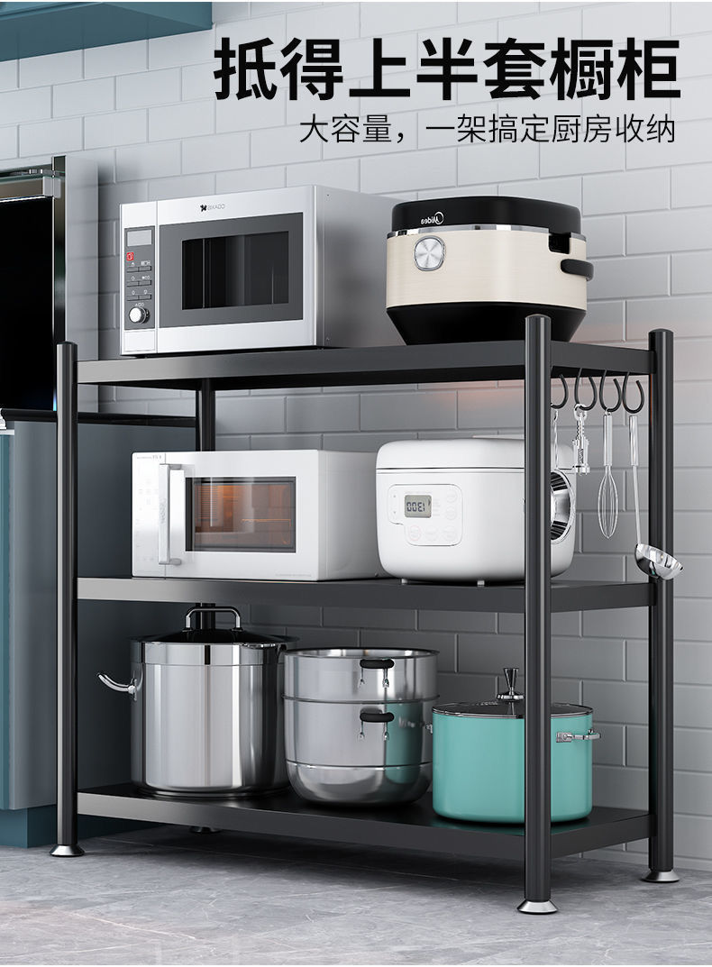 주방 수납 랙 바닥 다층 전자 레인지 랙 주방 용품 보관 랙 냄비 보관 랙 두꺼운 베이킹 페인트스토어 가기
