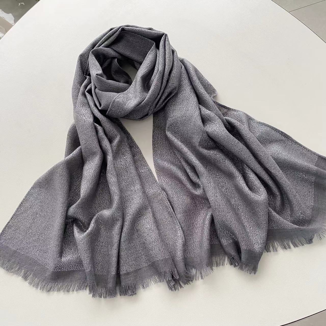 처리 사용자 정의 유럽과 미국 패션 스카프 반짝 실버 실크 장식 회색 조커 직사각형 목도리 샘플 생산스토어 가기
