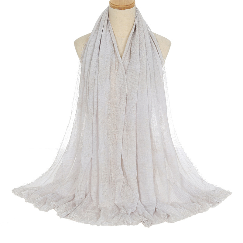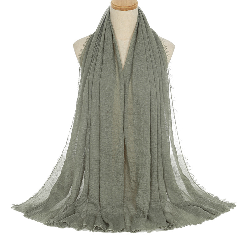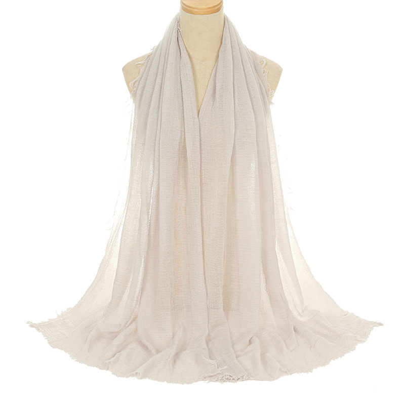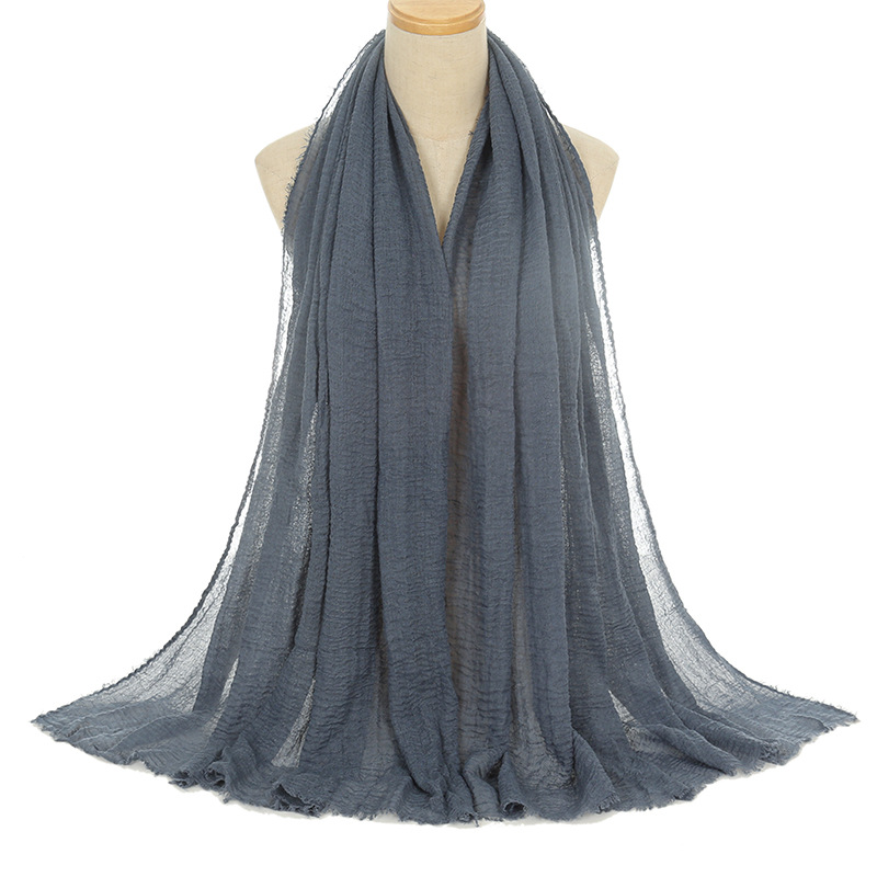 공장 직접 공급 새로운 주름 남성면 원사 단색 스카프 천연 주름진 면 린넨 울 가장자리 여성용 거즈스토어 가기