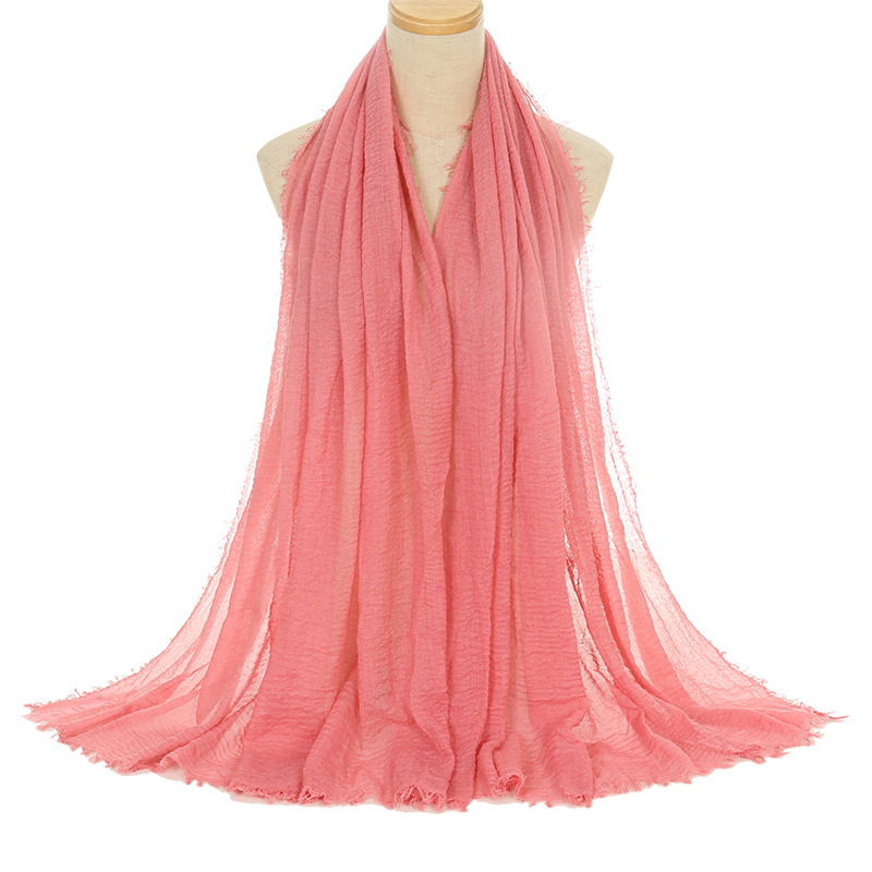 工厂直供新款褶皱人棉纱单色围巾自然皱棉麻毛须边女士纱巾