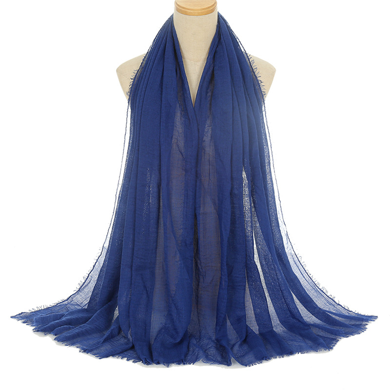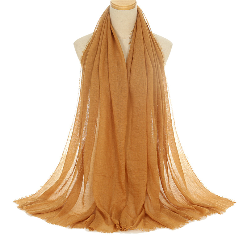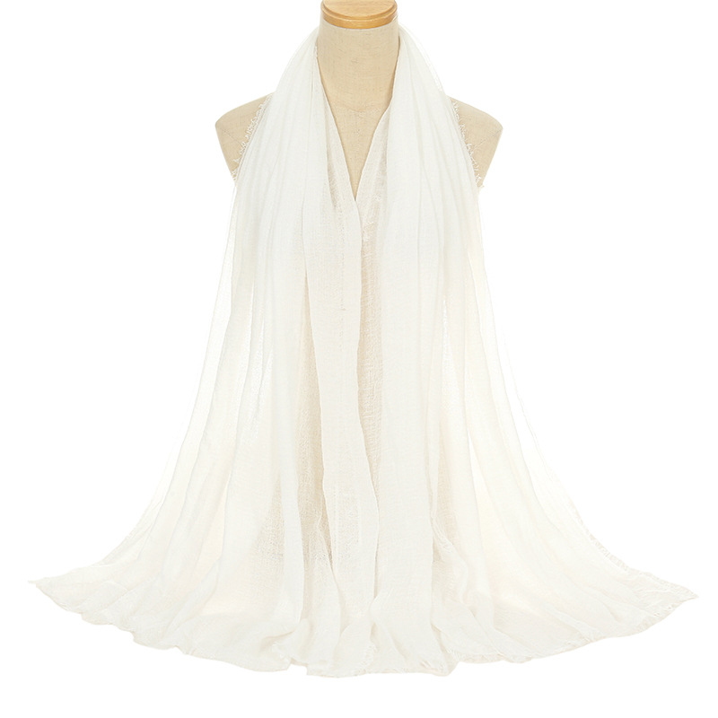 공장 직접 공급 새로운 주름 남성면 원사 단색 스카프 천연 주름진 면 린넨 울 가장자리 여성용 거즈