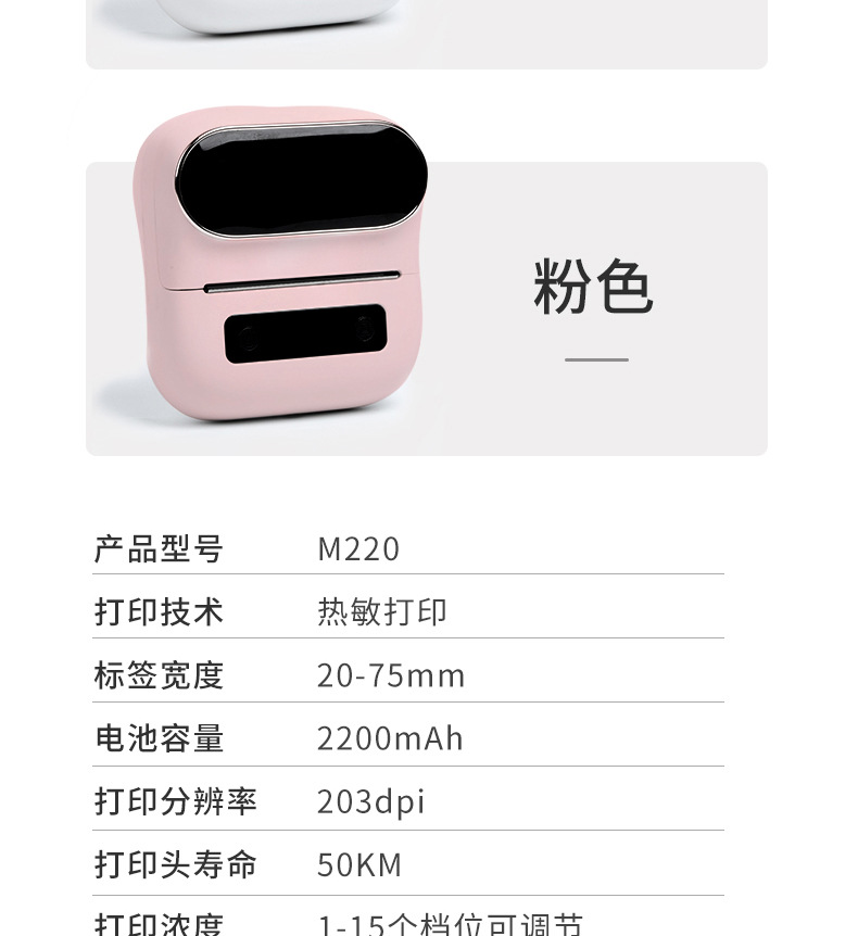 • M220 영어-핑크 (인쇄 용지 롤 포함)