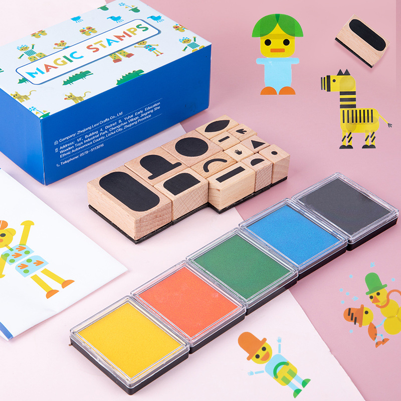 나무 마술 퍼즐 DIY 인감 장난감 어린이 재미있는 퍼즐 잉크 패드 게임 손 두뇌 조정 선물스토어 가기