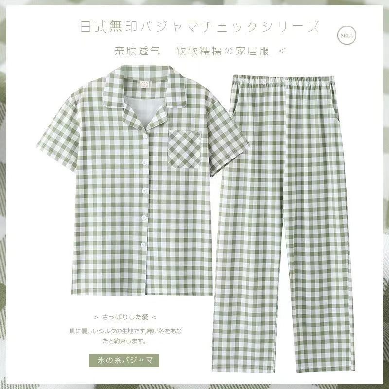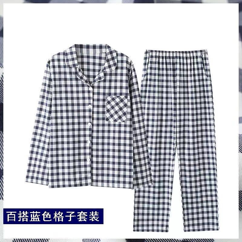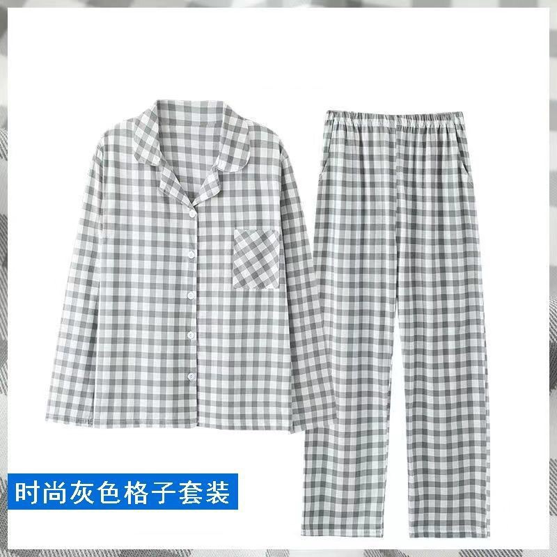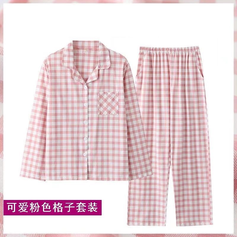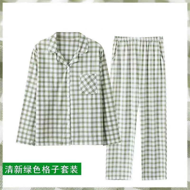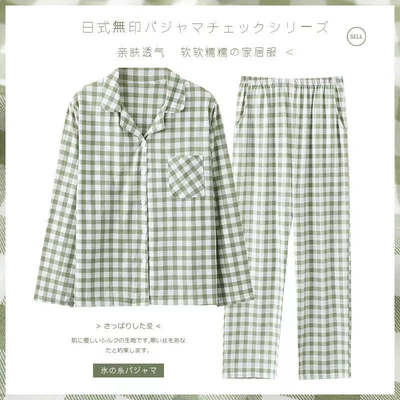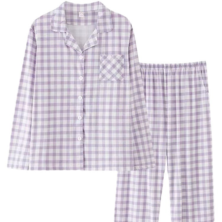 여름 얇은 순수 면화 긴팔 잠옷 여성 정장 격자 무늬 카디건 문학 여성 여름 신제품 귀여운 면화 가정 의류스토어 가기