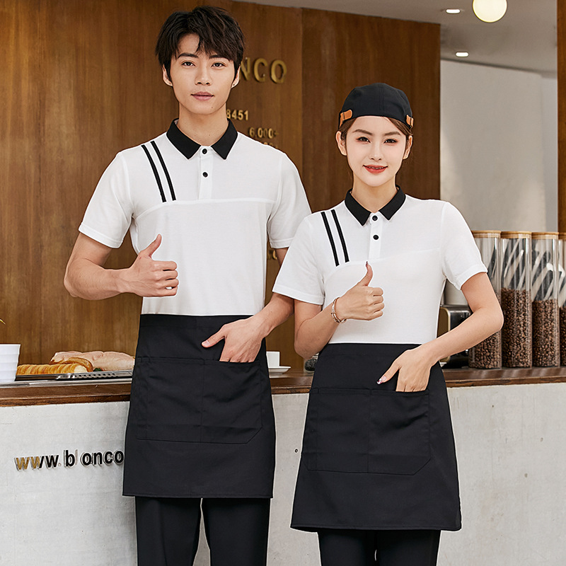 커피 밀크 티 레스토랑 베이킹 디저트 점원 작업복 취사 참석자 작업복 반소매 여성용 통기성 자수 캐릭터 여름스토어 가기