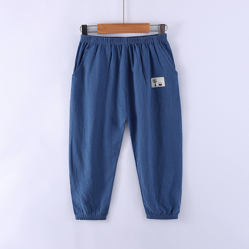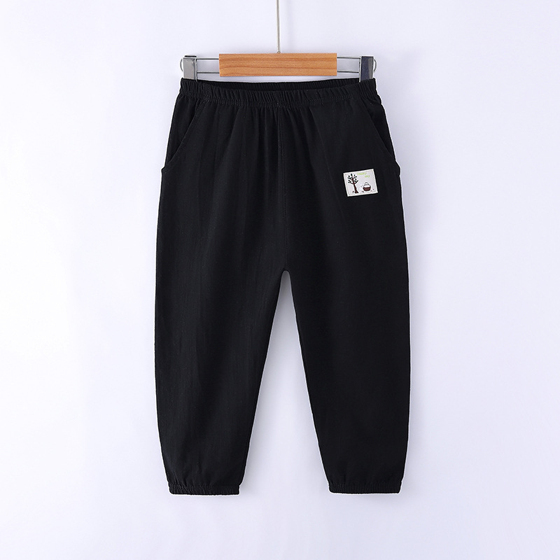어린이 여름 얇은 모기 방지 바지 아기 면과 린넨 단색 조임바지 중소 어린이용 루즈 캐주얼 스포츠 바지
