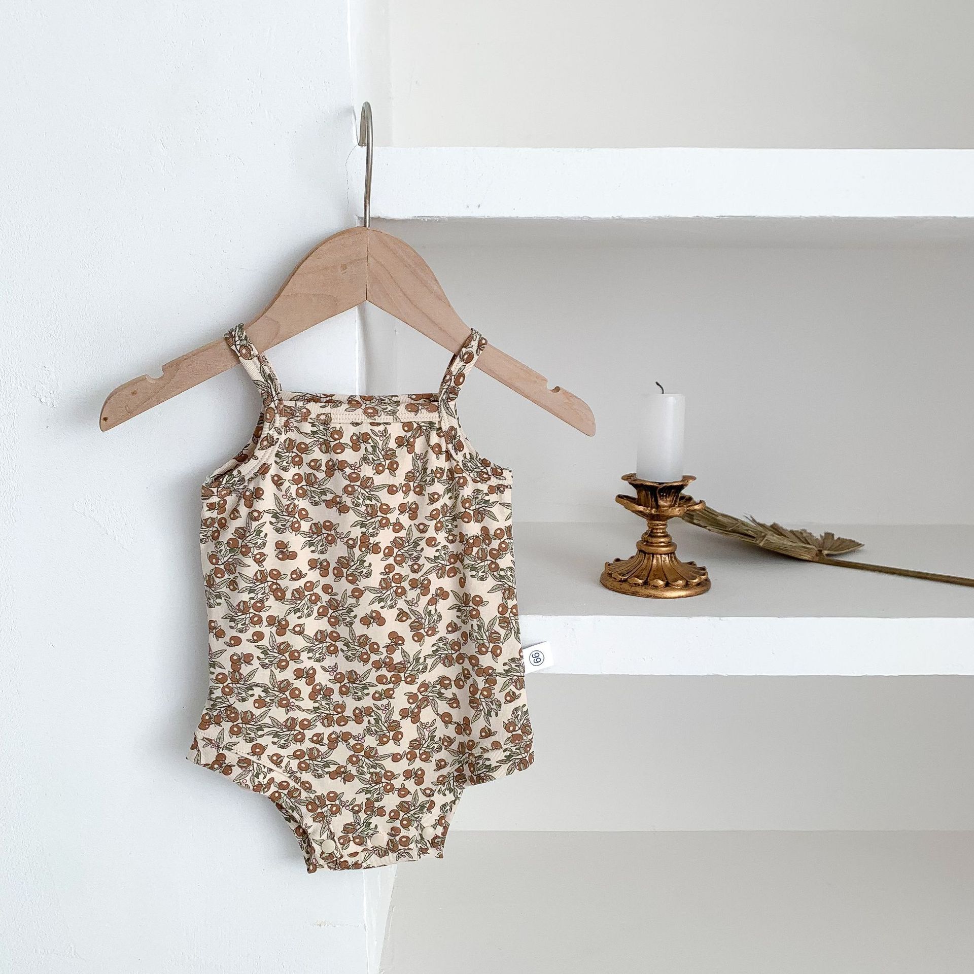 In 스타일 여름 아기의 꽃 프린트 원피스 랩 세트 어린이 얇은 인쇄 세련된 슬링 삼각형 원피스 세트