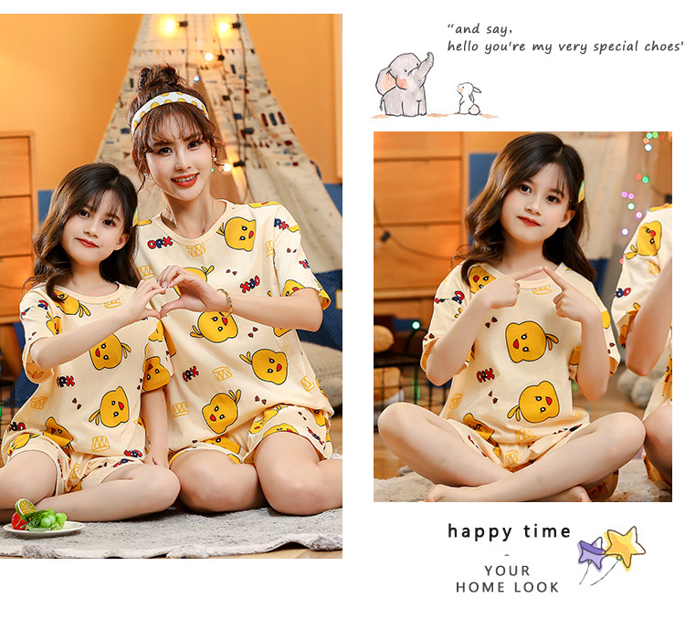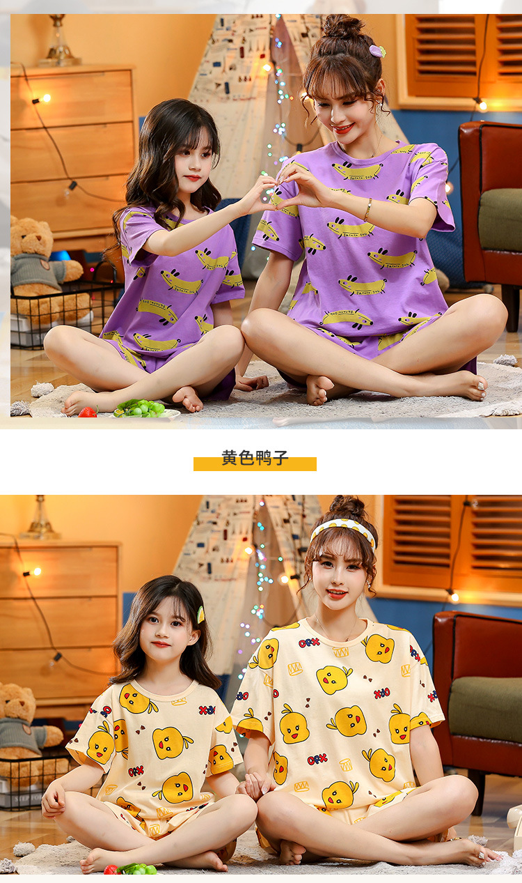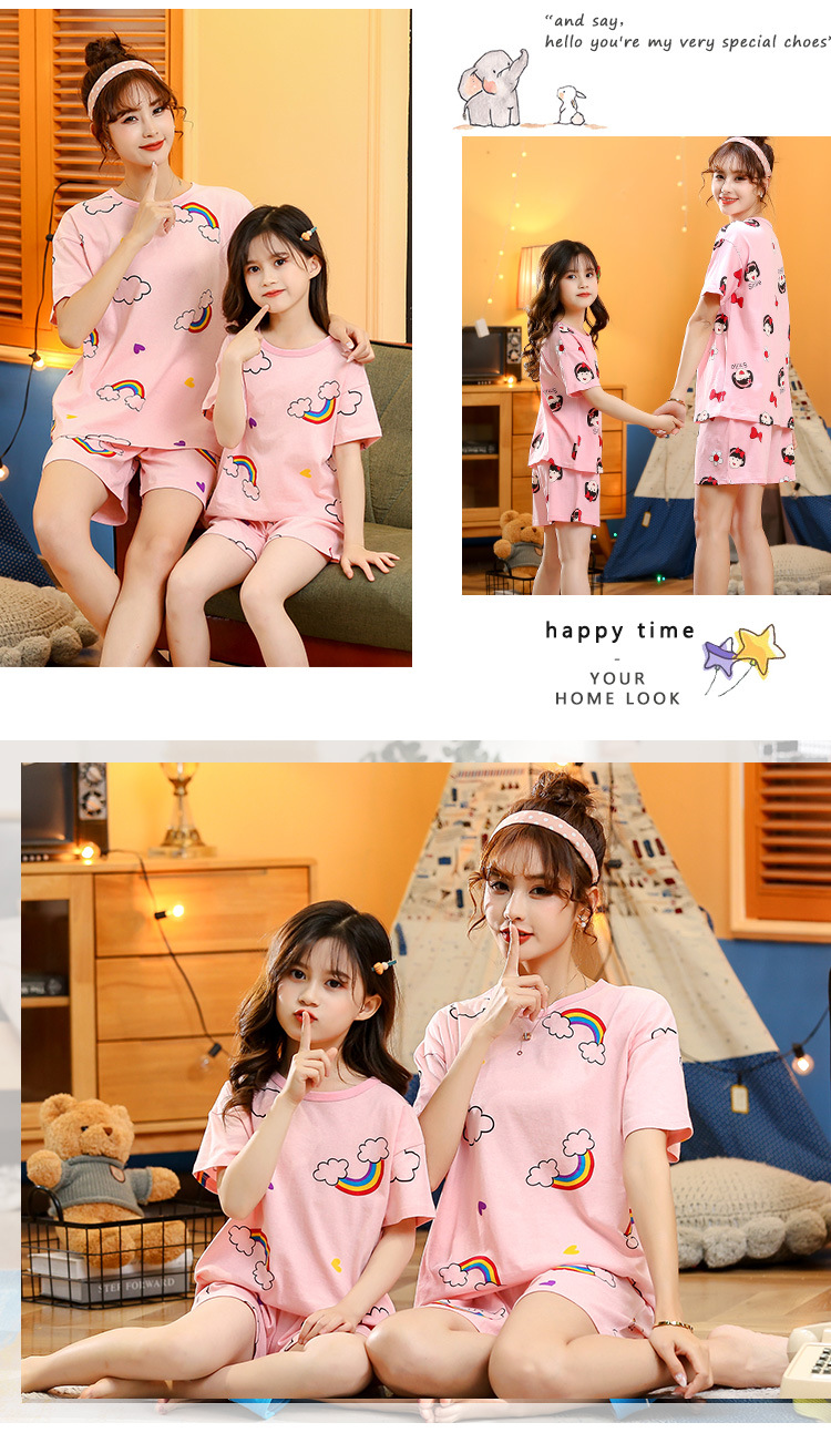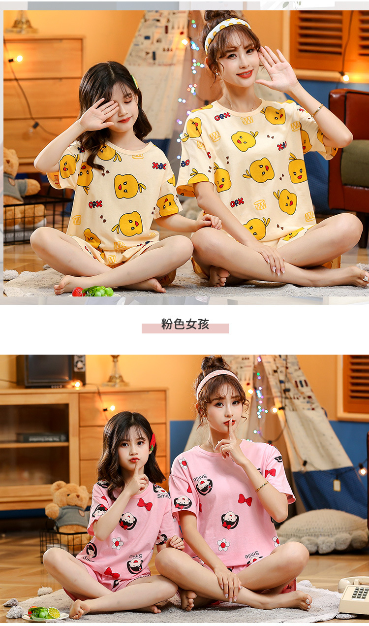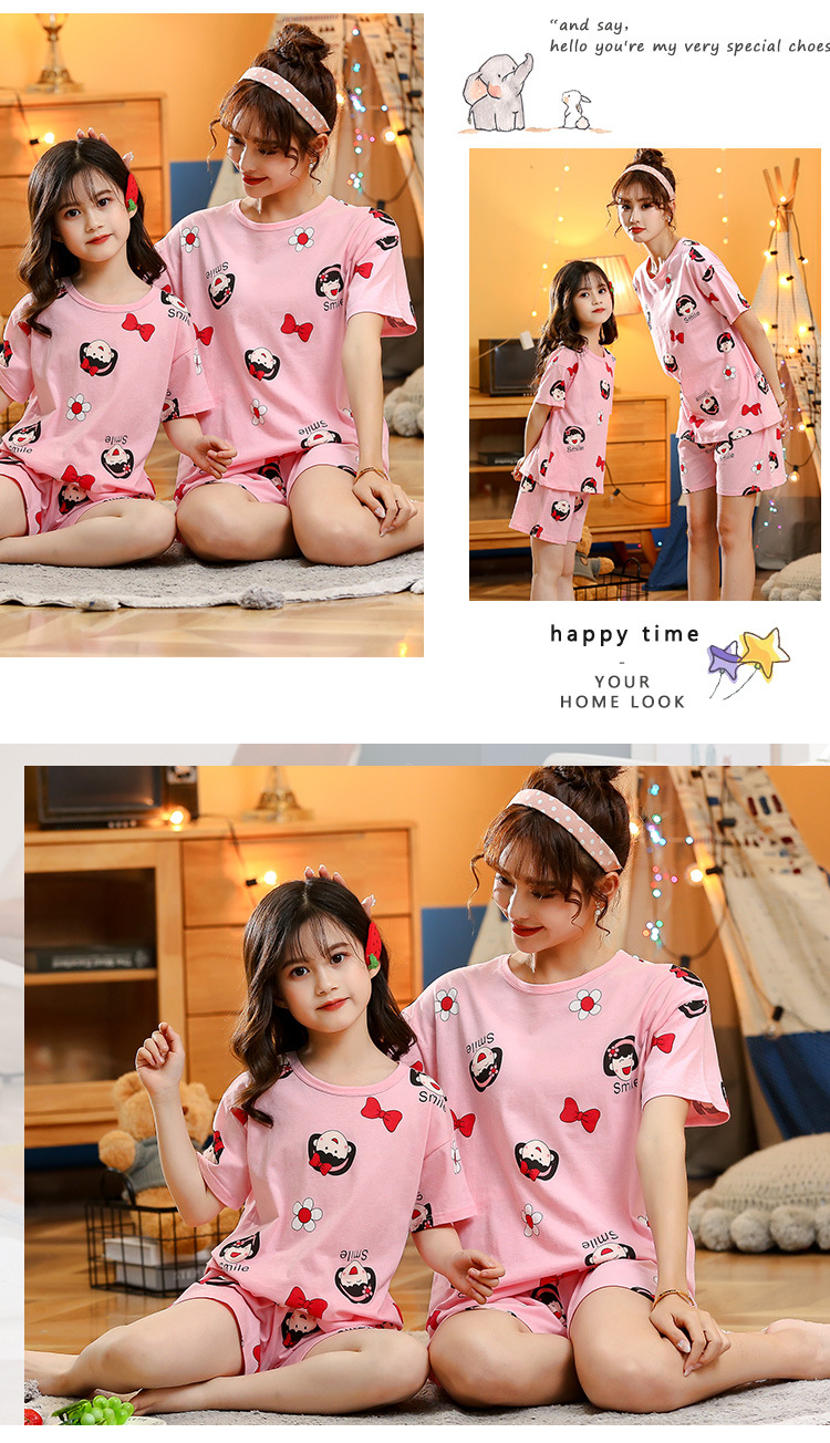어린이 잠옷 순면 여름 소녀 반팔 양복 부모-자식 여름 옷 에어컨 옷 만화 귀여운 엄마와 딸 집 옷스토어 가기