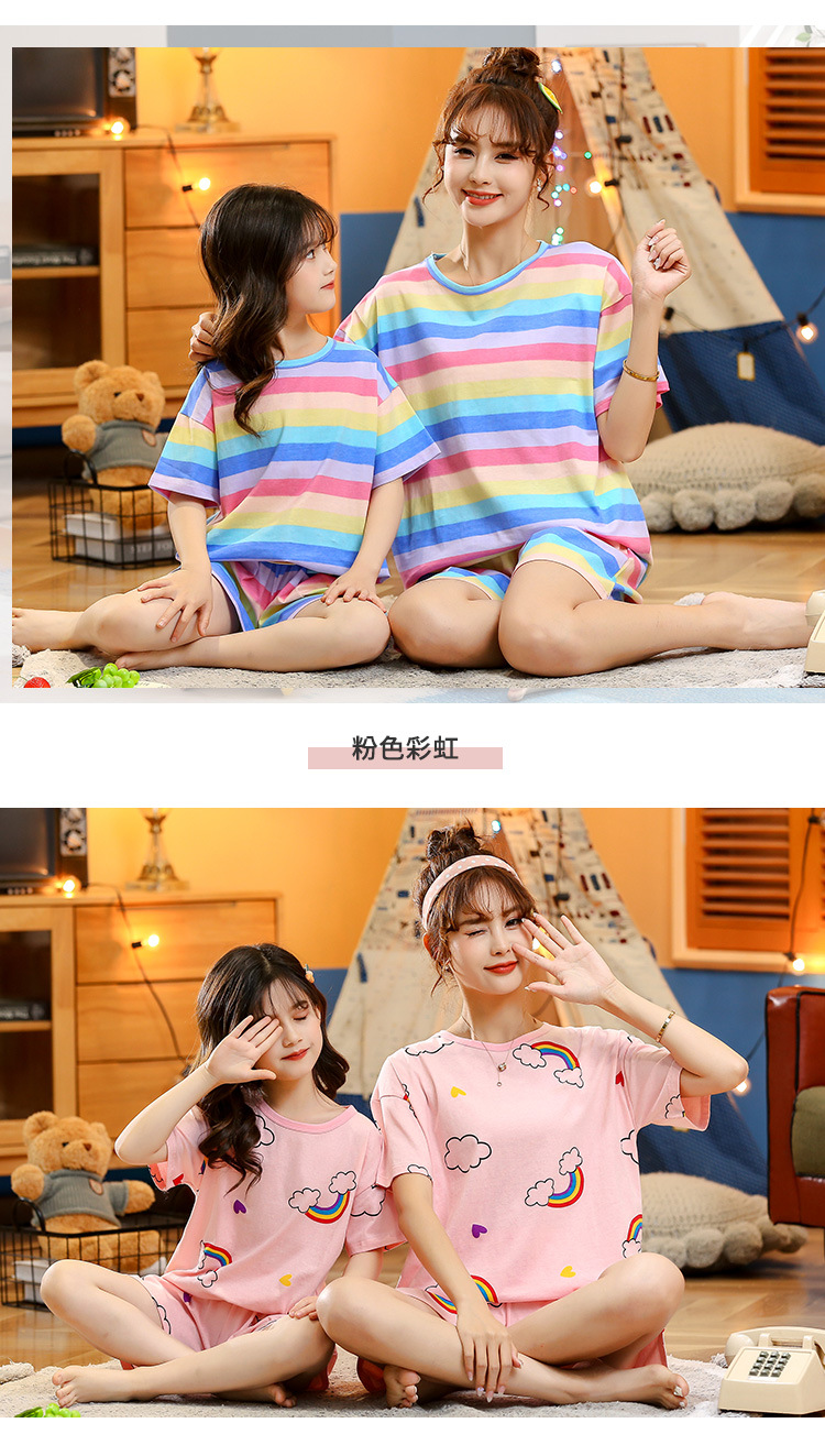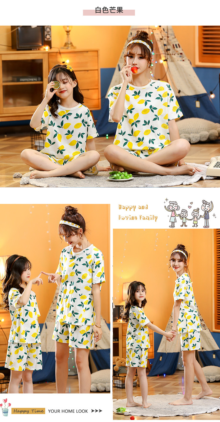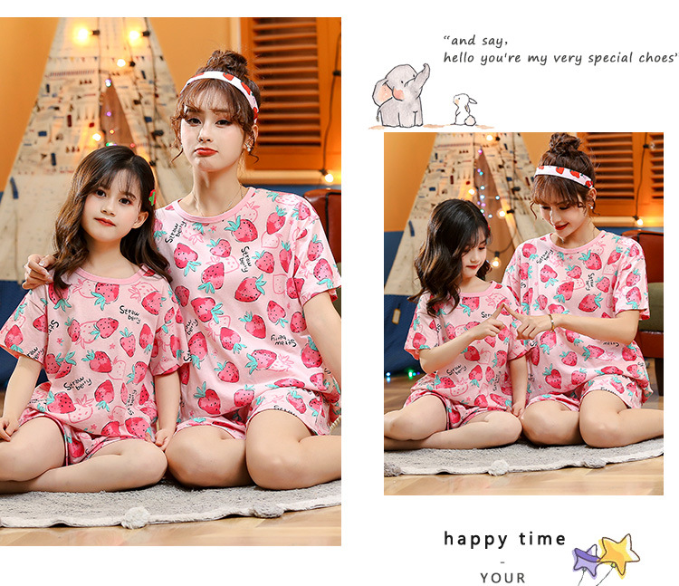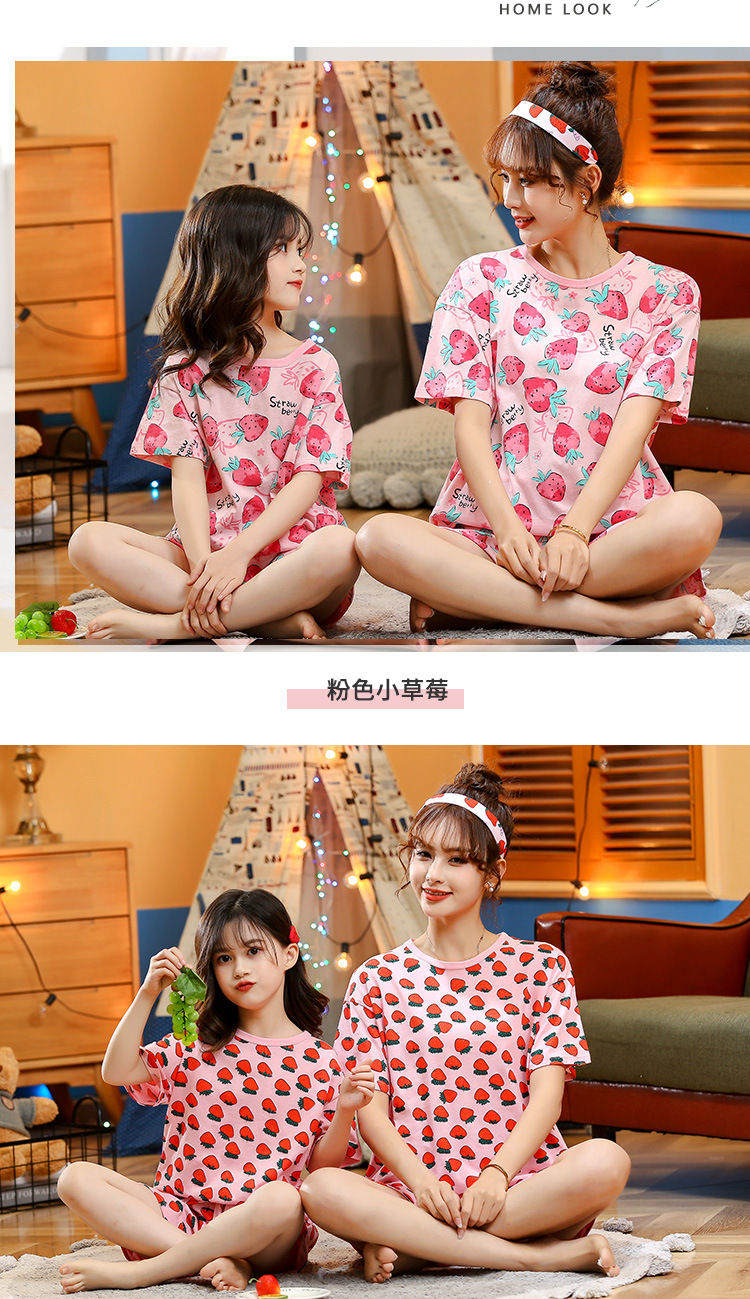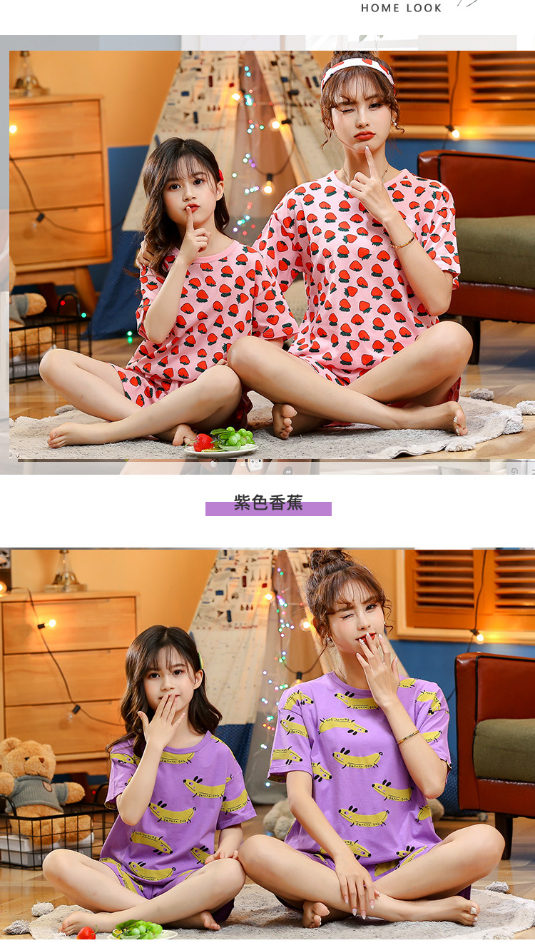 어린이 잠옷 순면 여름 소녀 반팔 양복 부모-자식 여름 옷 에어컨 옷 만화 귀여운 엄마와 딸 집 옷스토어 가기