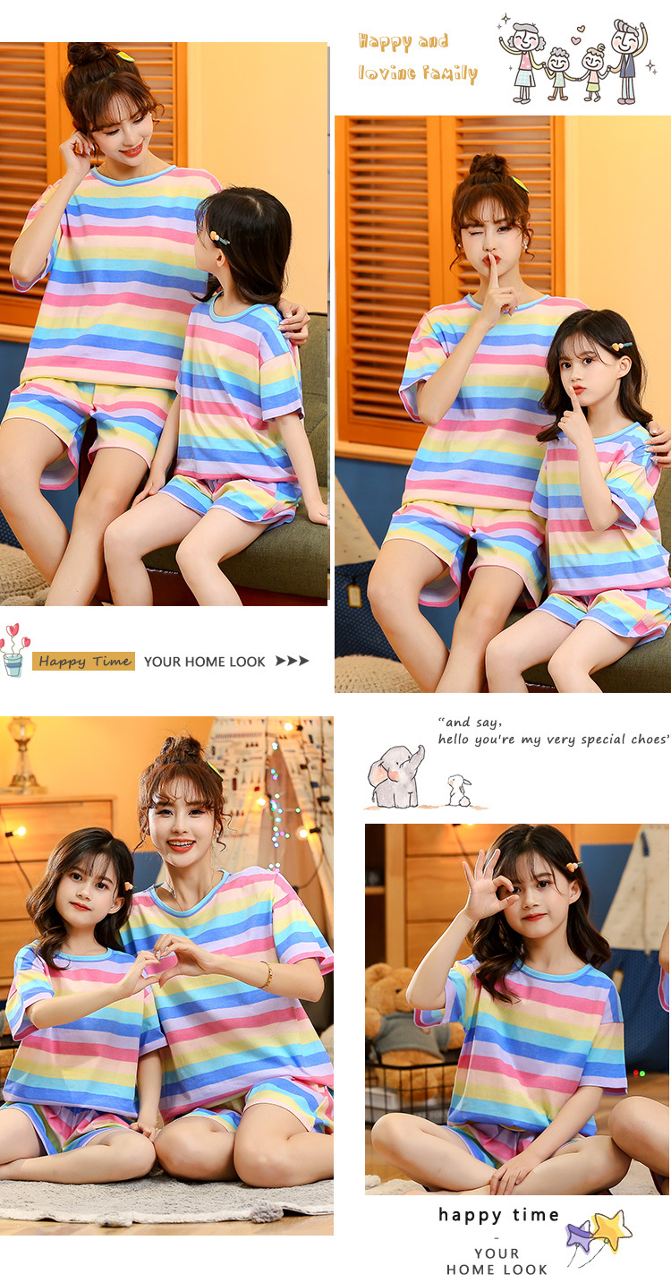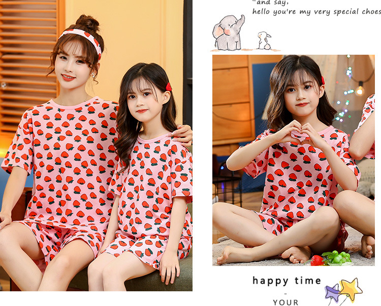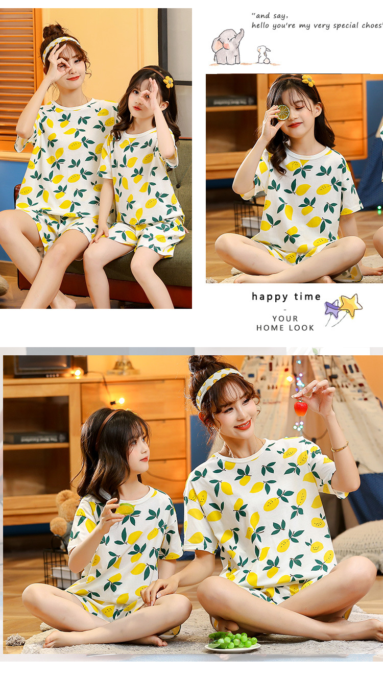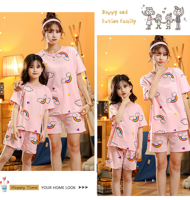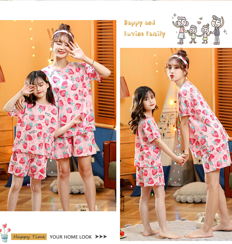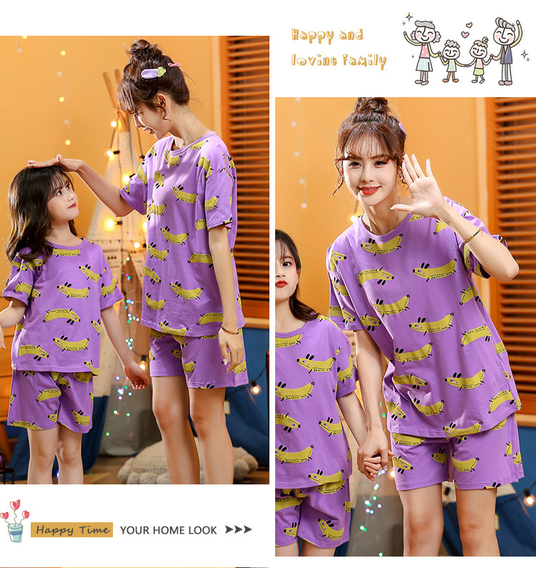 어린이 잠옷 순면 여름 소녀 반팔 양복 부모-자식 여름 옷 에어컨 옷 만화 귀여운 엄마와 딸 집 옷스토어 가기