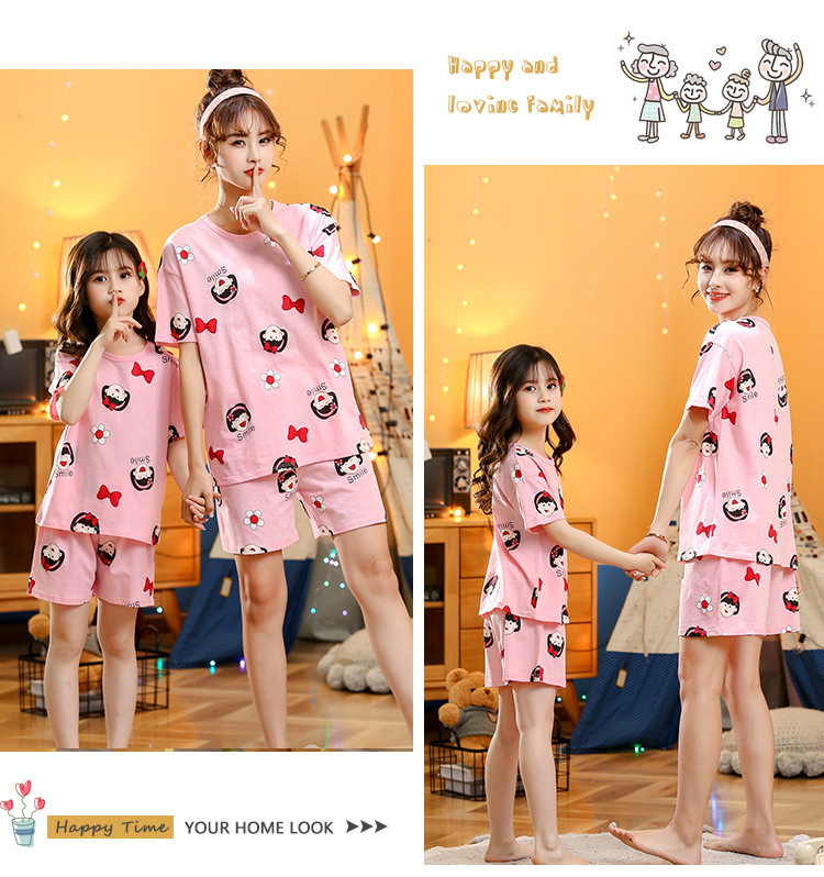 어린이 잠옷 순면 여름 소녀 반팔 양복 부모-자식 여름 옷 에어컨 옷 만화 귀여운 엄마와 딸 집 옷