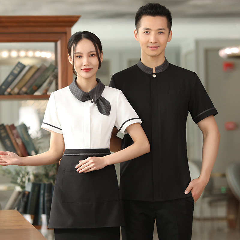 프론트 오피스 승무원 작업복 반팔 여성용 중국 레스토랑 호텔 케이터링 찻집 핫팟 호텔 직원 의류 여름스토어 가기