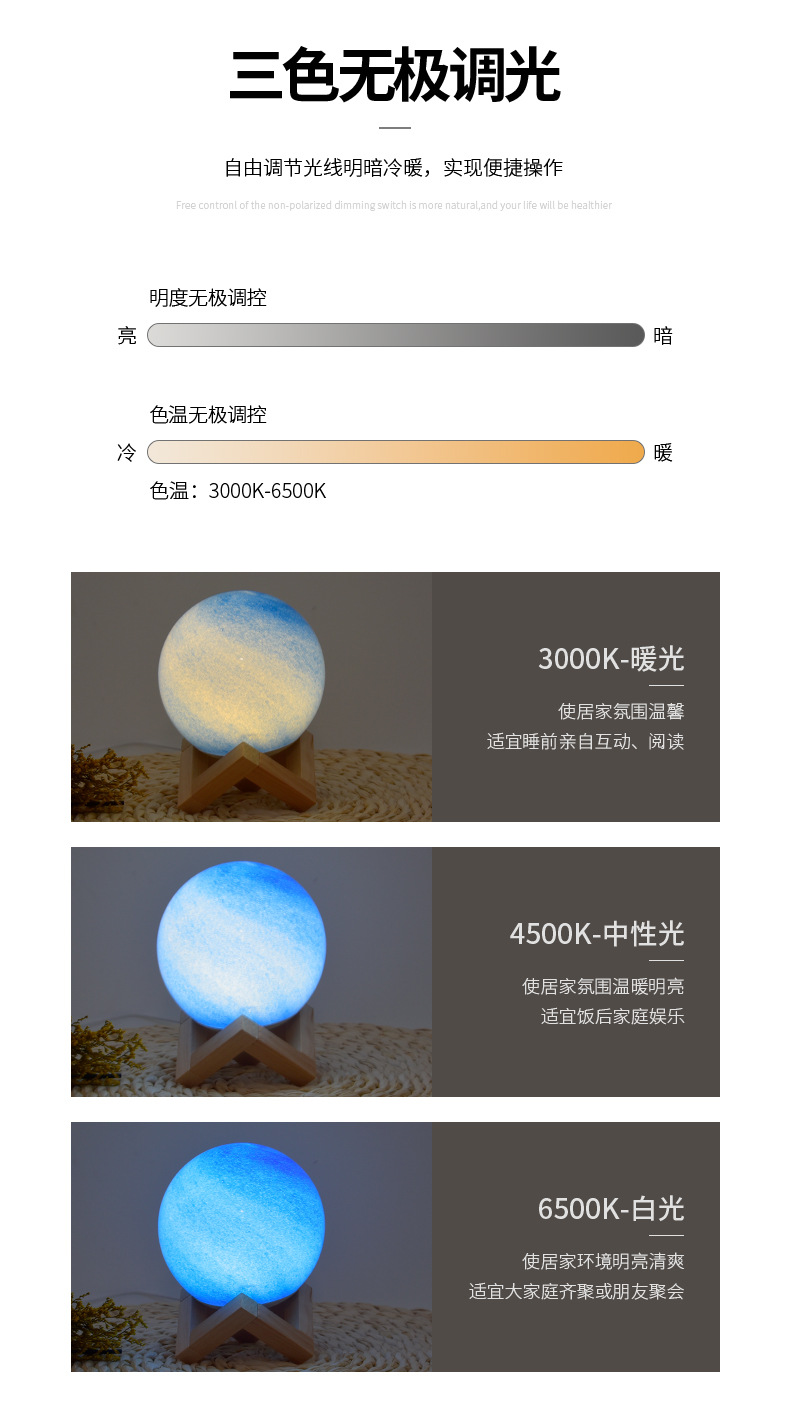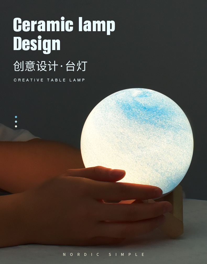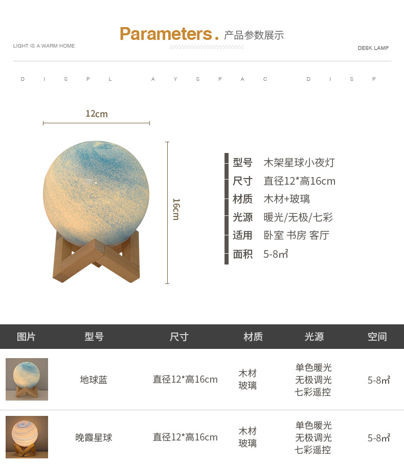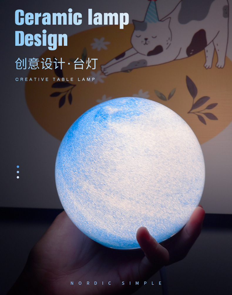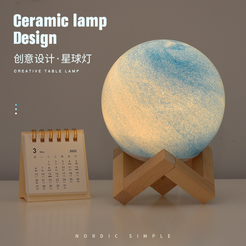 북유럽 테이블 램프 빛나는 침실 수면 분위기 침대 옆 램프 유리 밤 빛 별이 빛나는 하늘 달 행성 선물