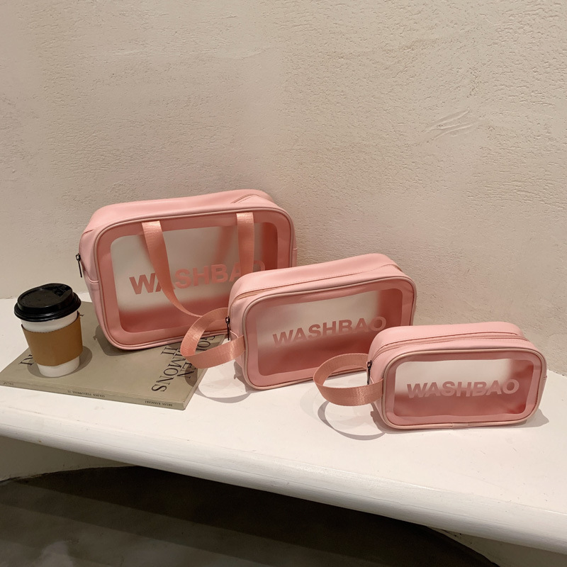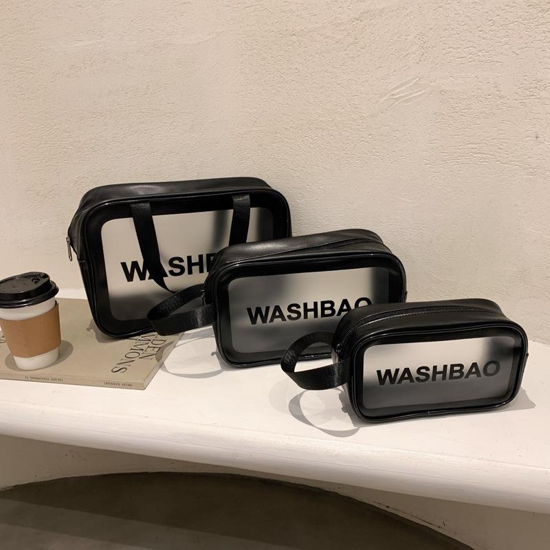 맞춤형 휴대용 대용량 휴대용 여행 투명 워시 pu 방수 화장품 가방 워시 스킨 케어 보관 가방스토어 가기