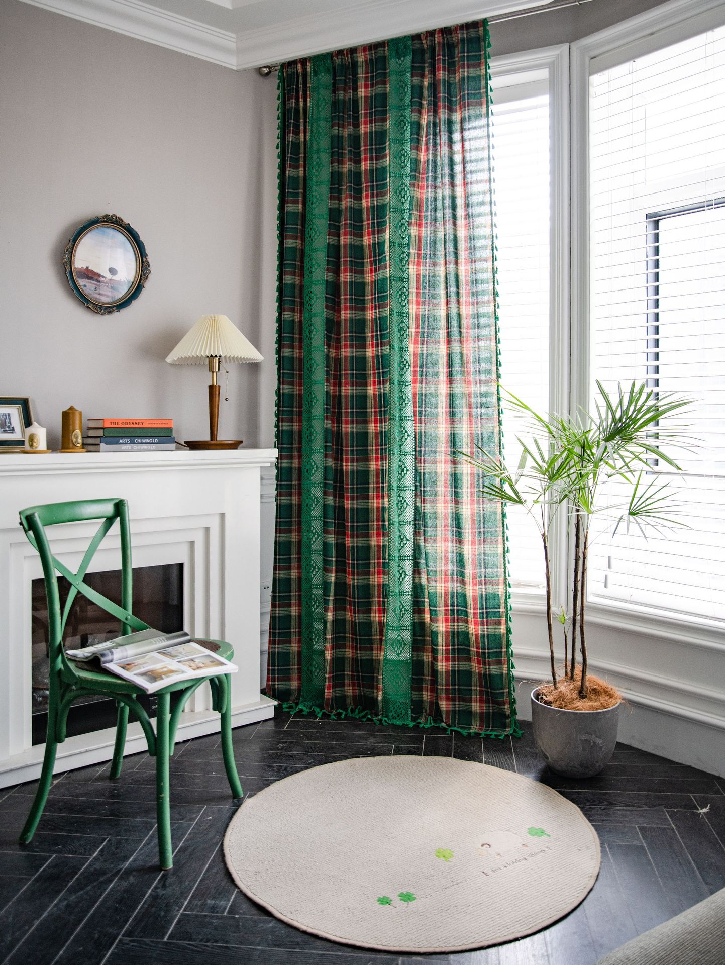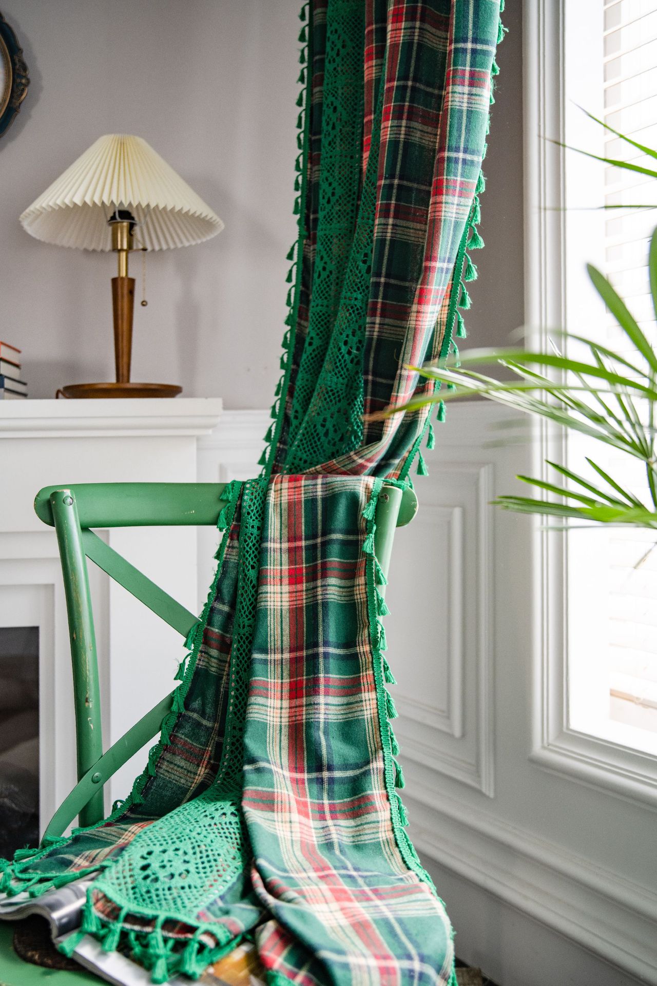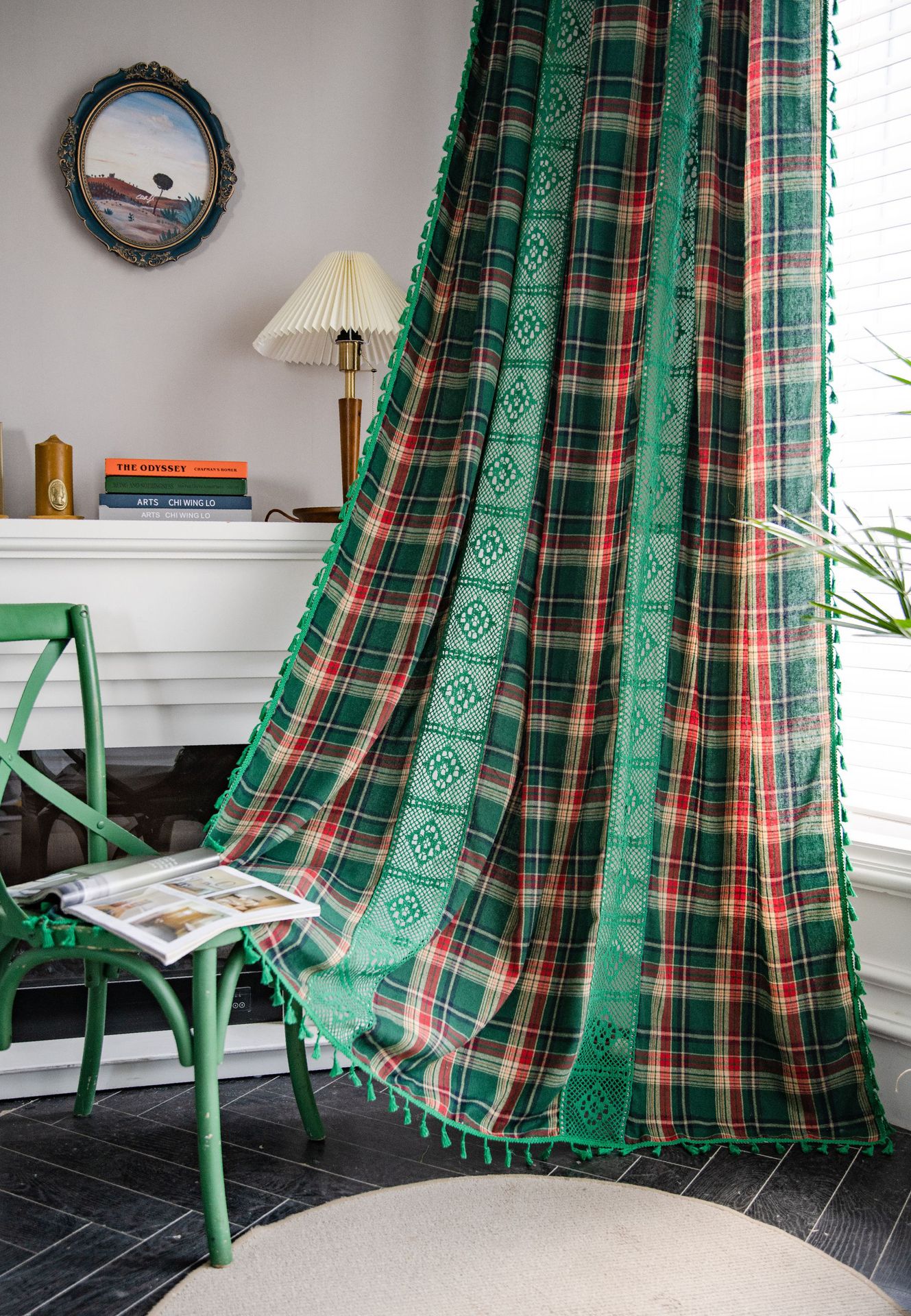Yuman Qiyun 커튼 녹색 격자 무늬 스티칭 원사 염색 미국 커튼 완성 주방 커튼 베이 창 커튼 반 음영스토어 가기