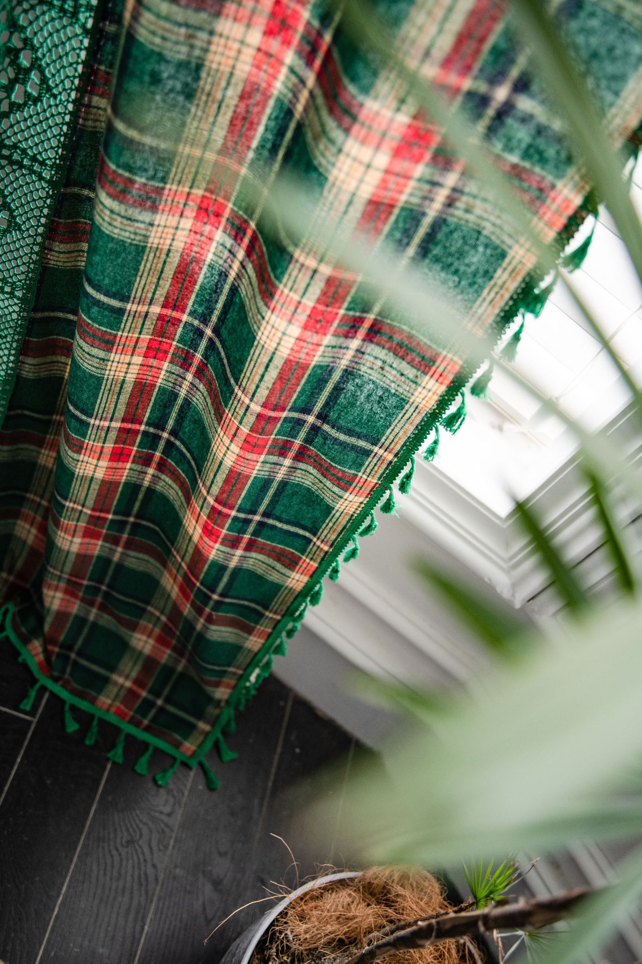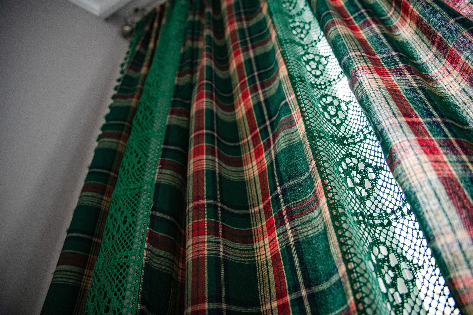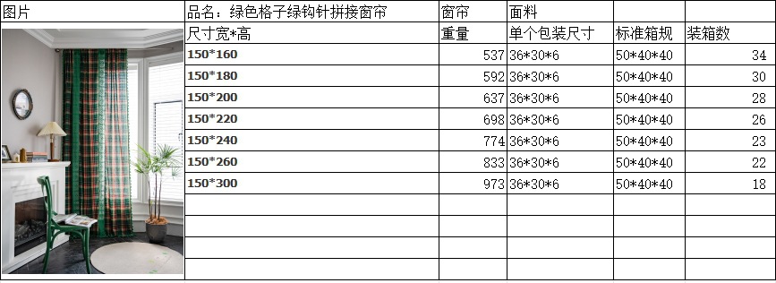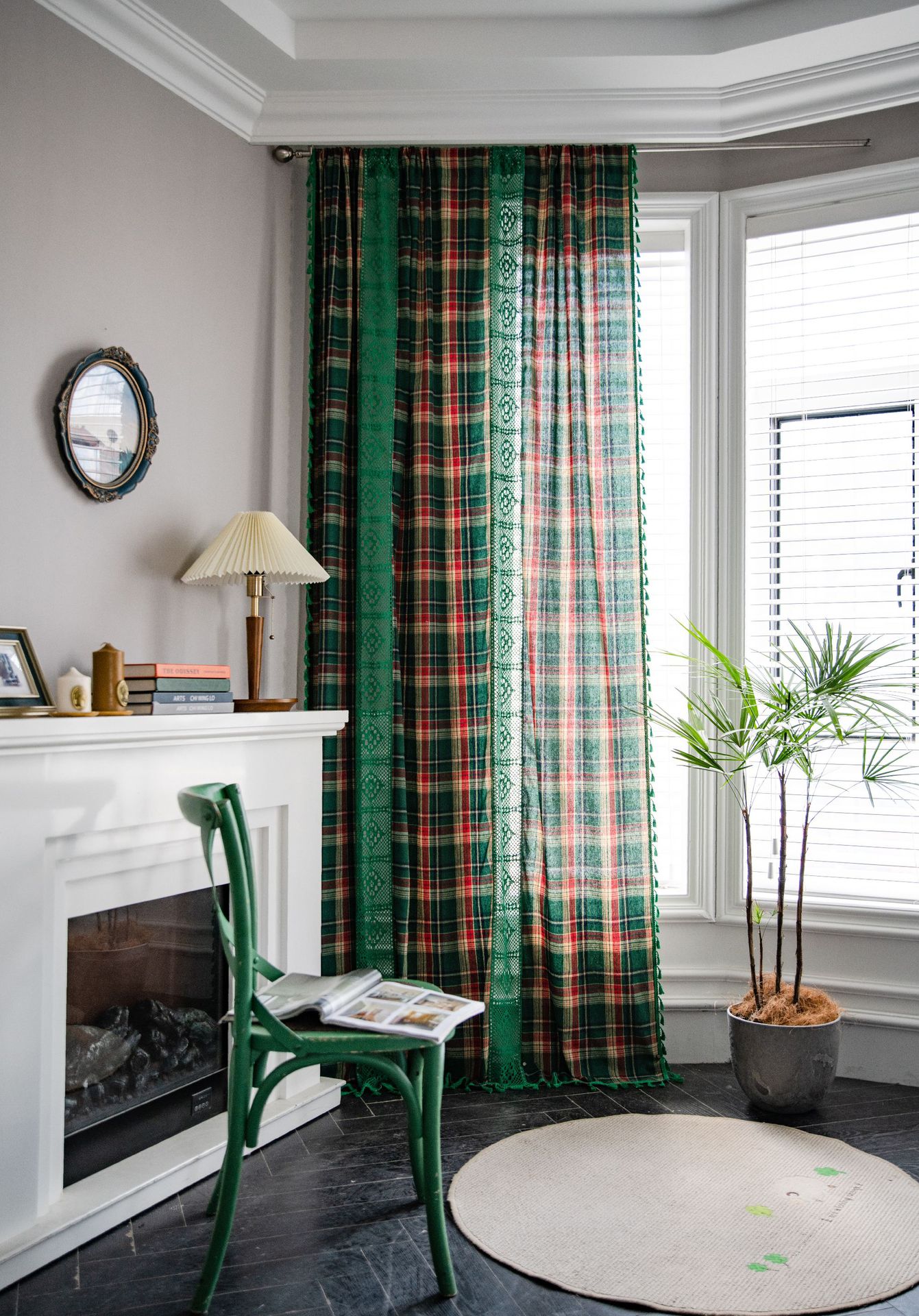 Yuman Qiyun 커튼 녹색 격자 무늬 스티칭 원사 염색 미국 커튼 완성 주방 커튼 베이 창 커튼 반 음영스토어 가기