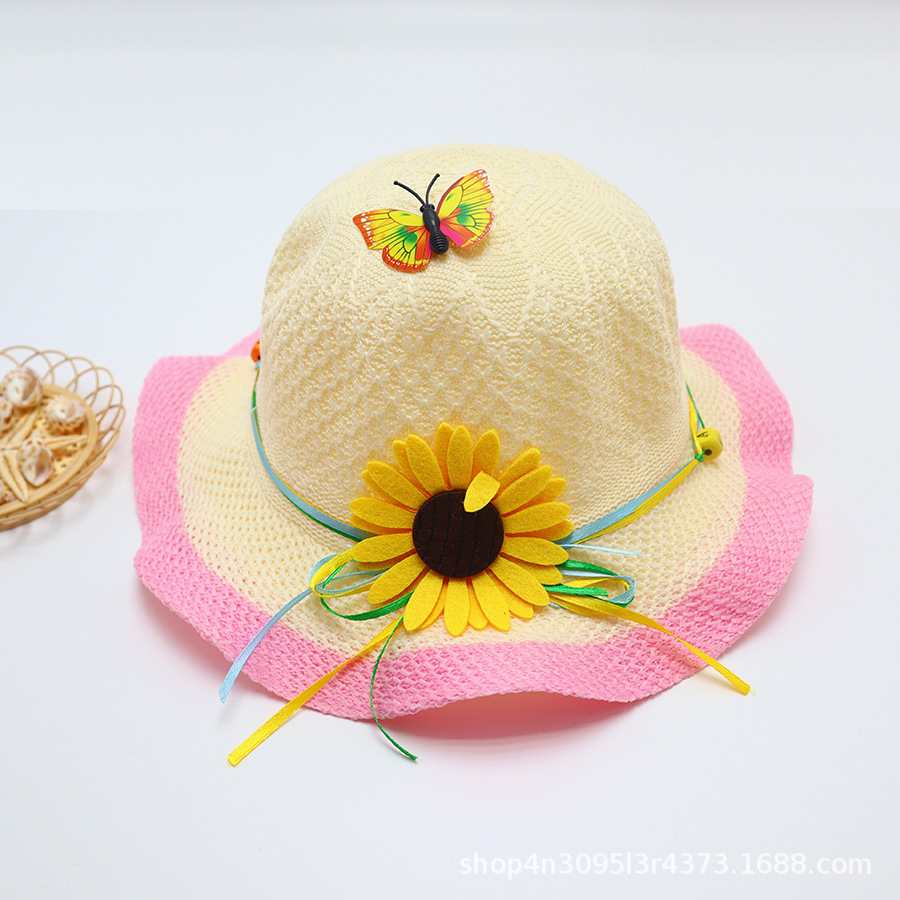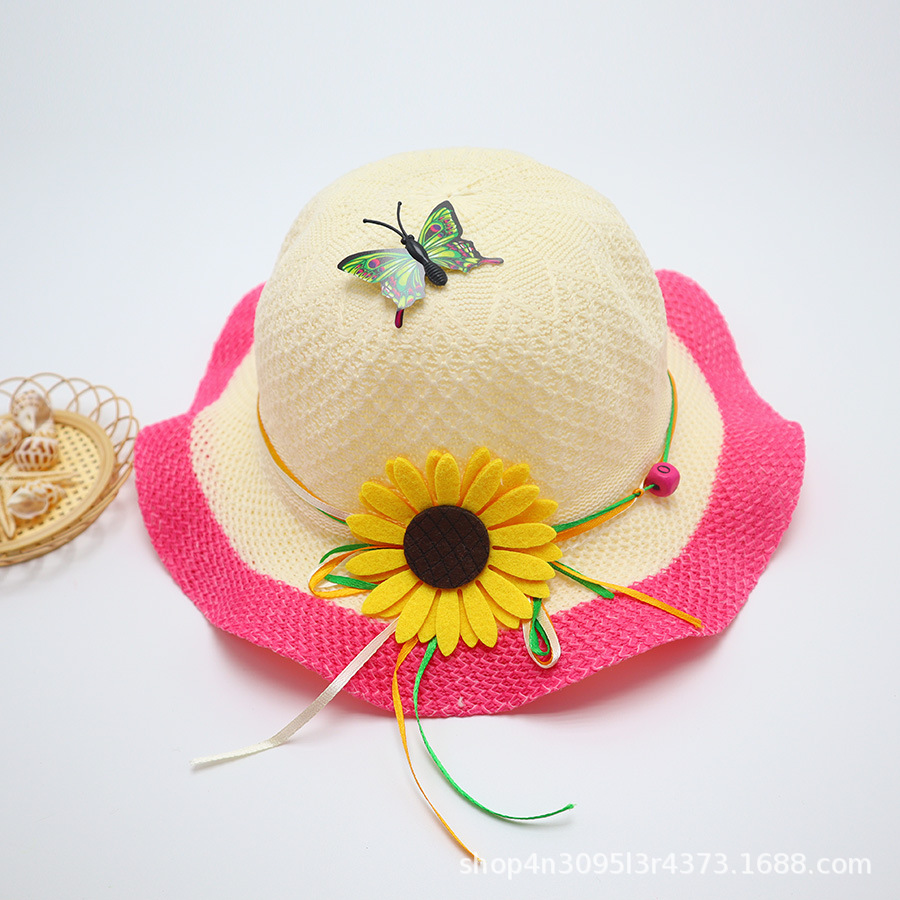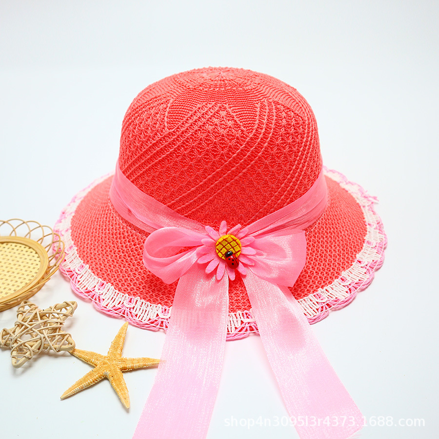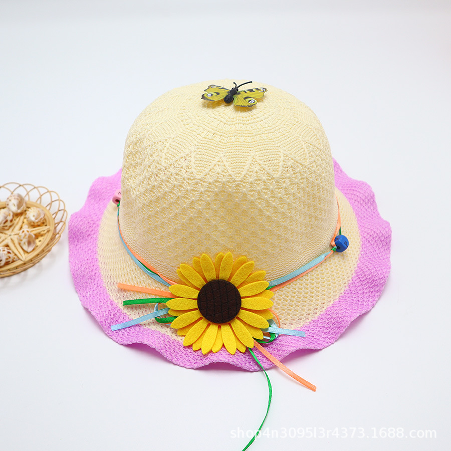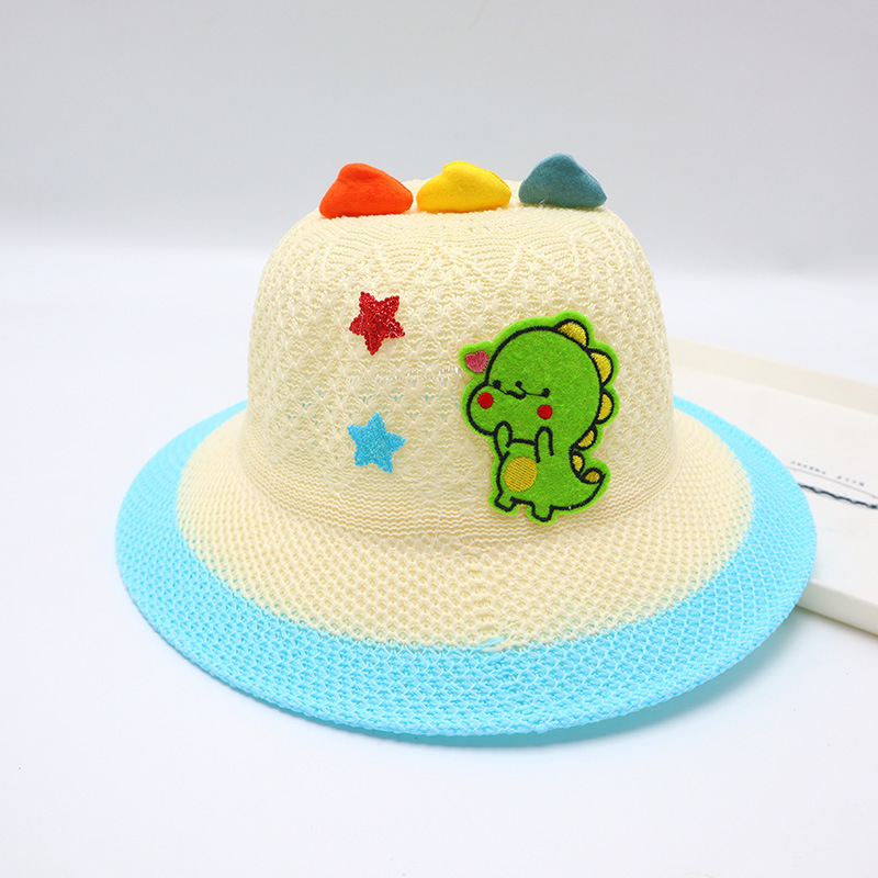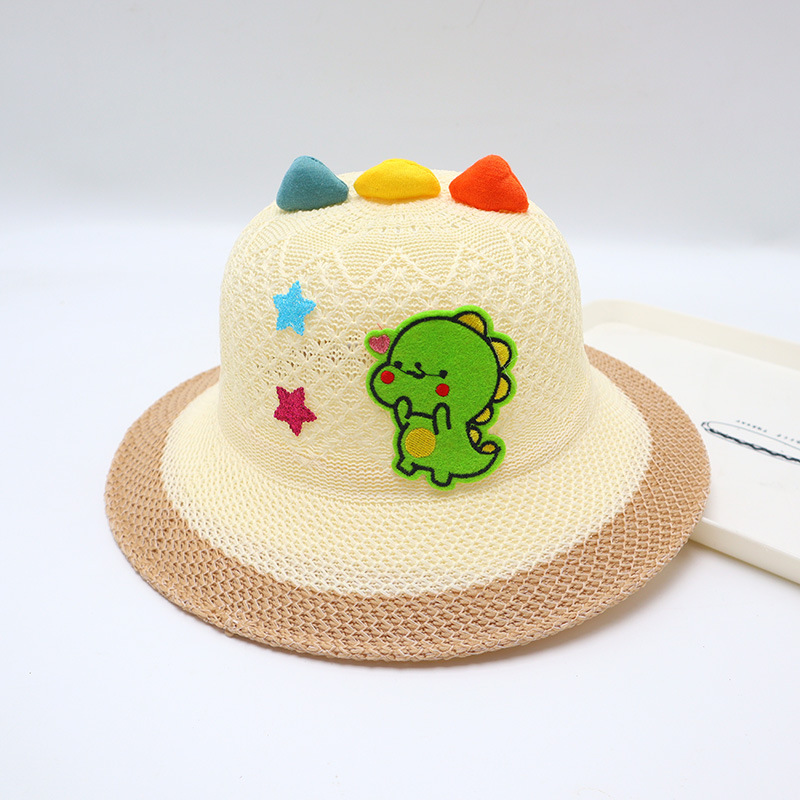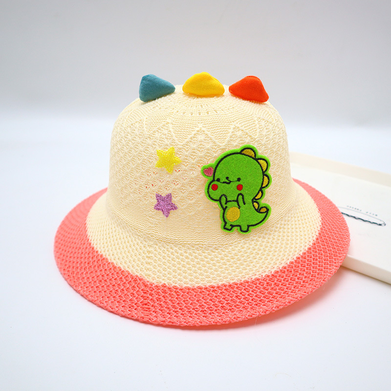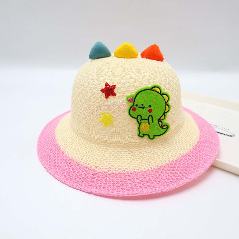 어린이용 밀짚모자, 통기성 좋은 모자, 큰 챙, 달콤하고 귀여운, 야외 휴가용, 자외선 차단, 소녀용 작은 공룡 밀짚모자