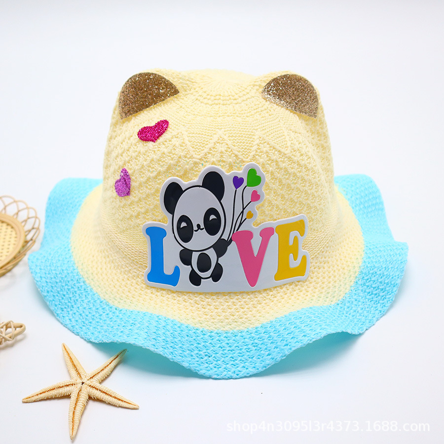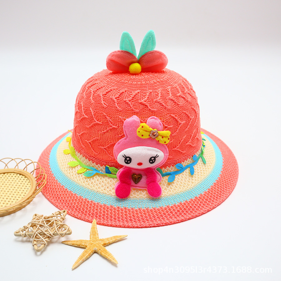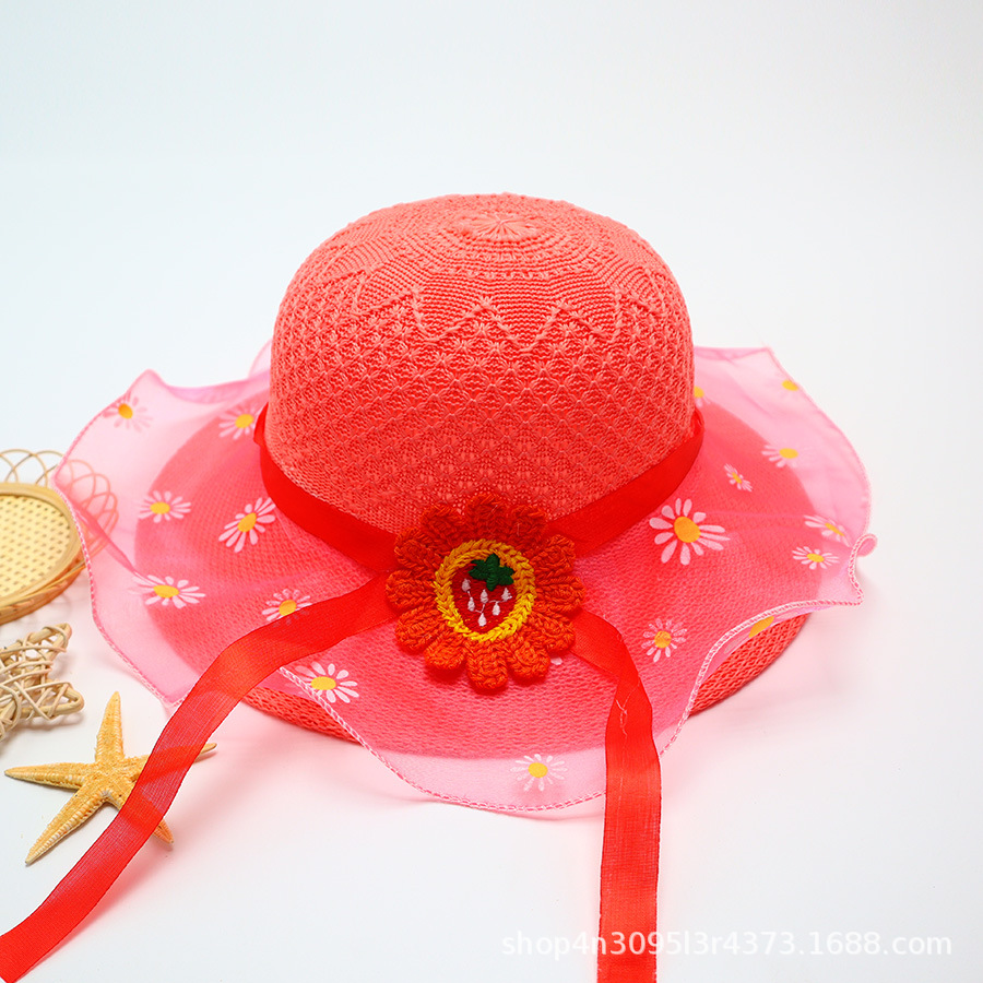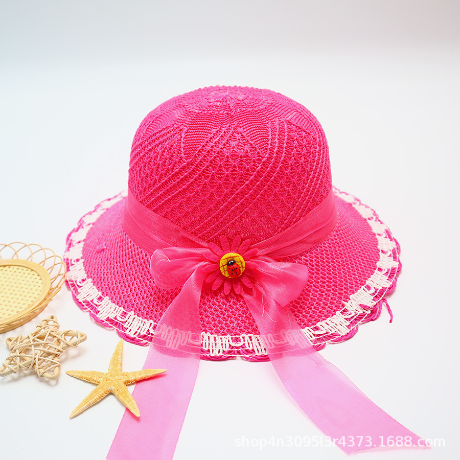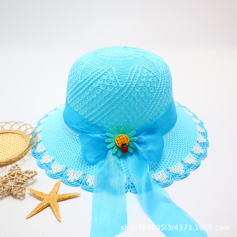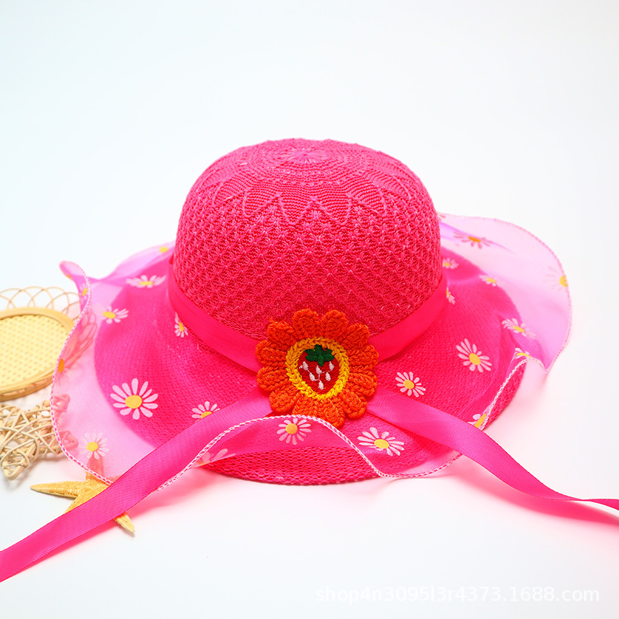 어린이용 밀짚모자, 통기성 좋은 모자, 큰 챙, 달콤하고 귀여운, 야외 휴가용, 자외선 차단, 소녀용 작은 공룡 밀짚모자