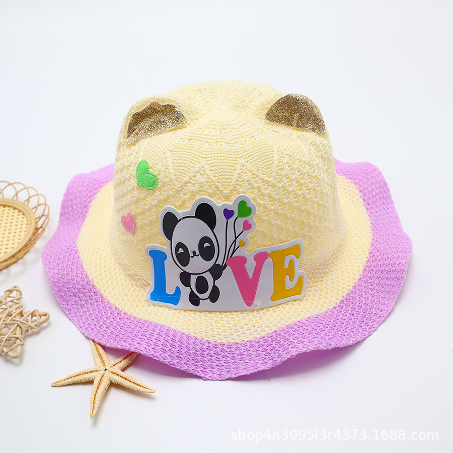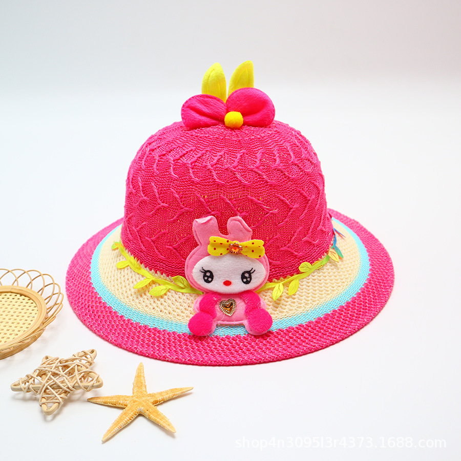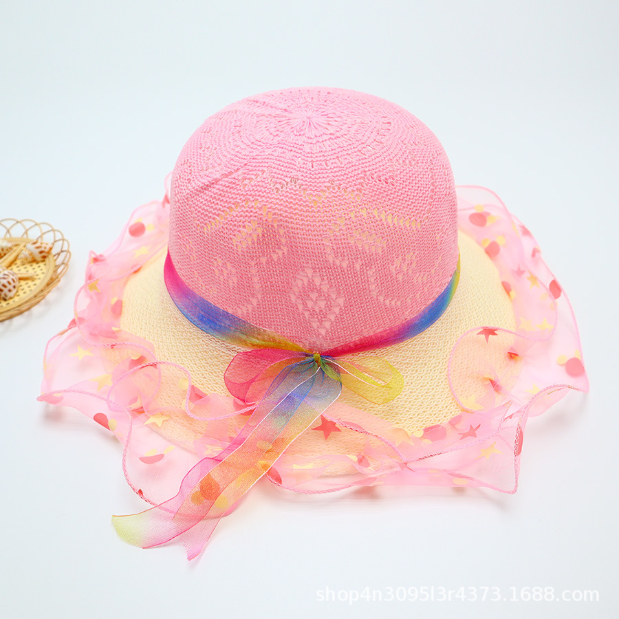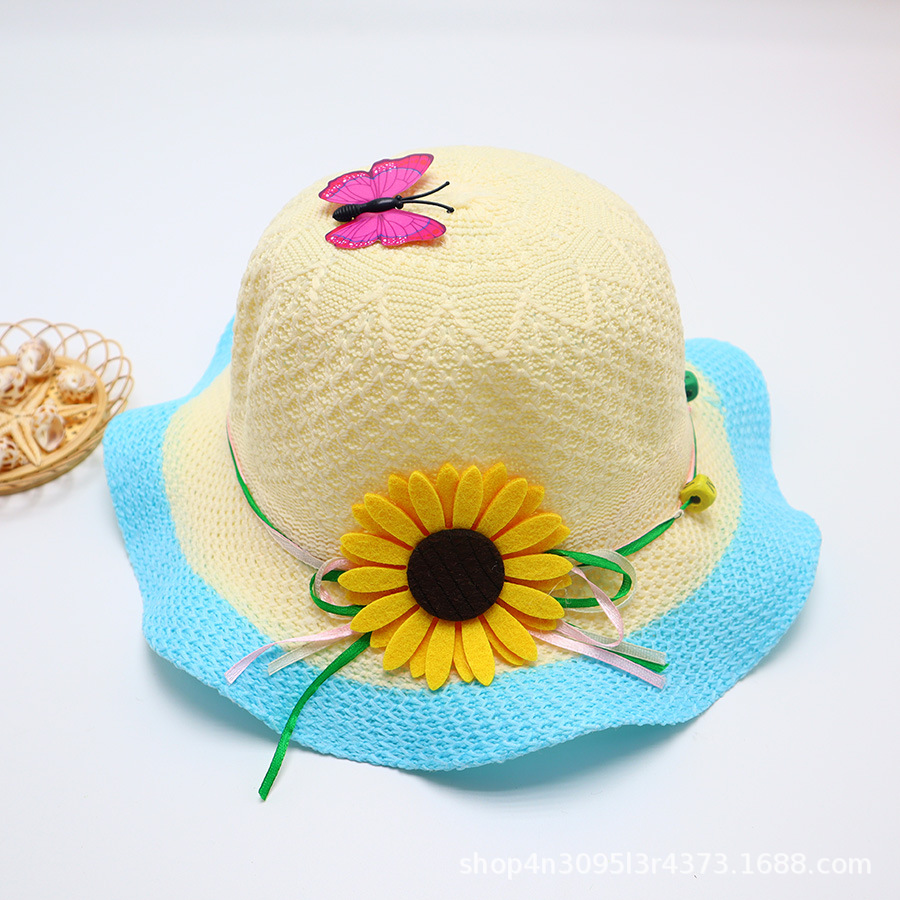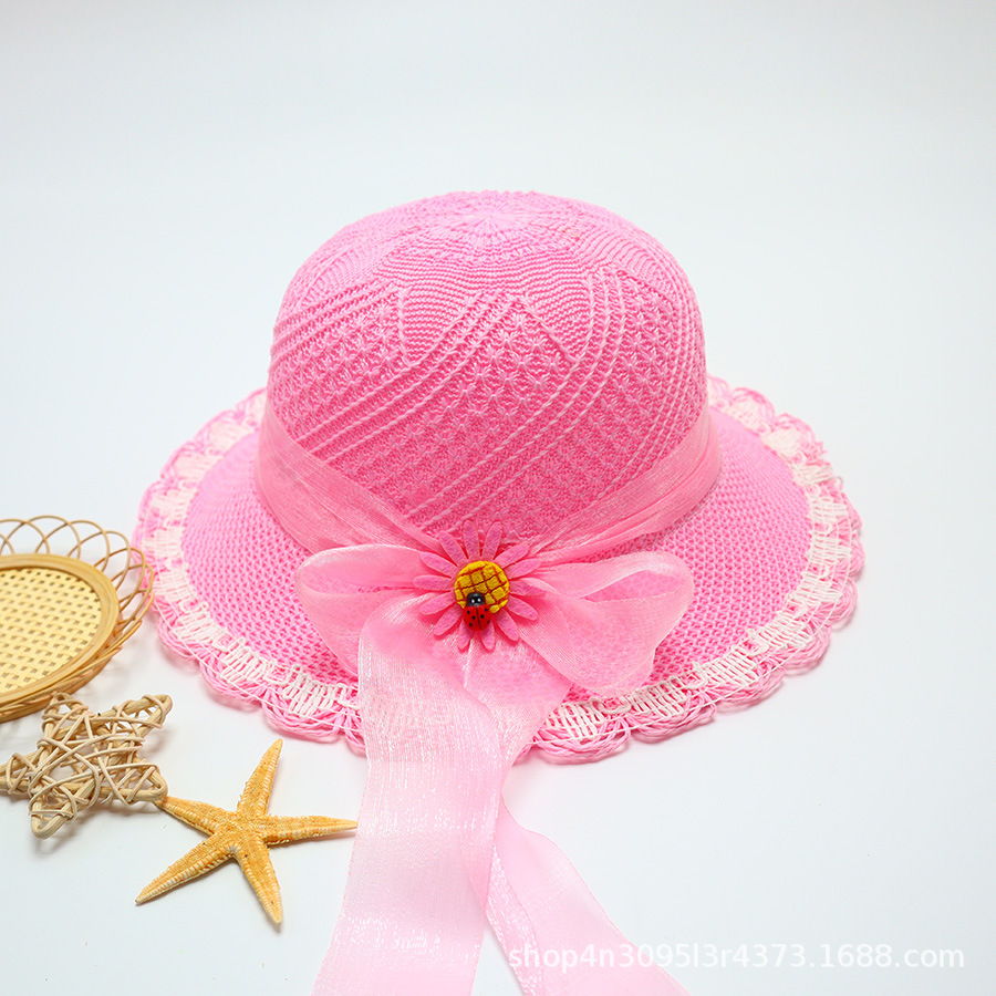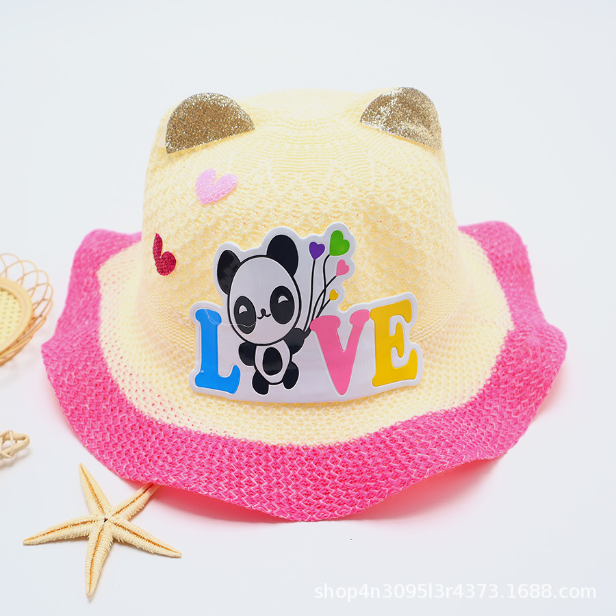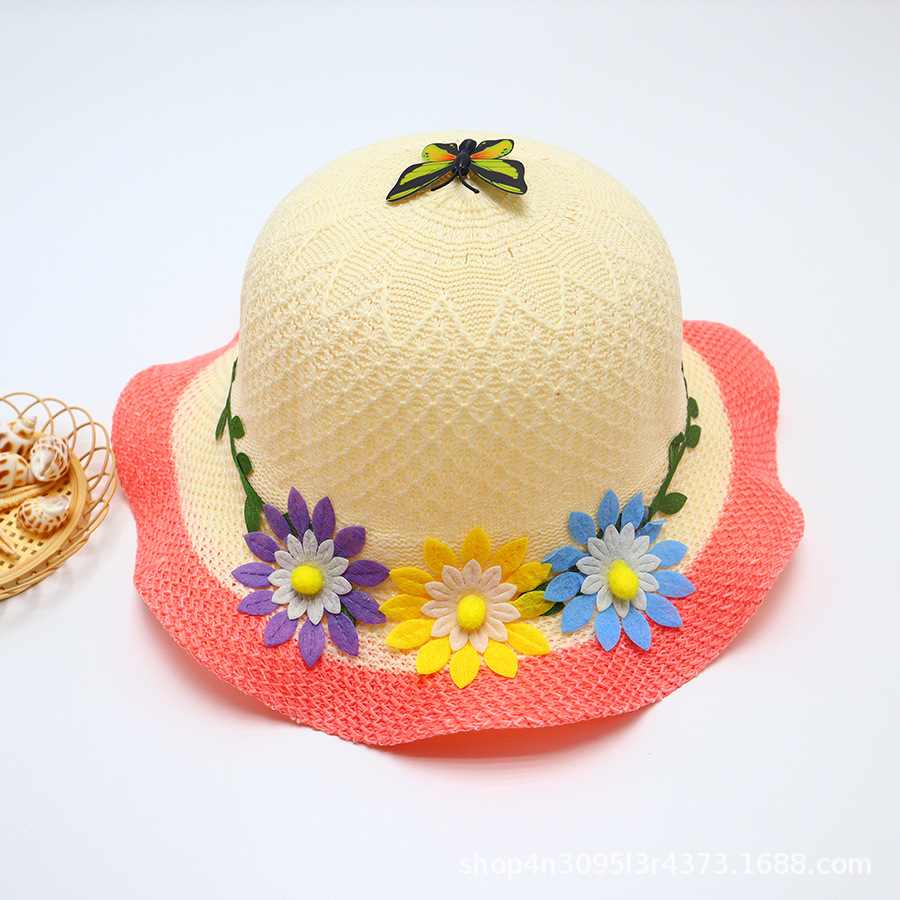 어린이용 밀짚모자, 통기성 좋은 모자, 큰 챙, 달콤하고 귀여운, 야외 휴가용, 자외선 차단, 소녀용 작은 공룡 밀짚모자