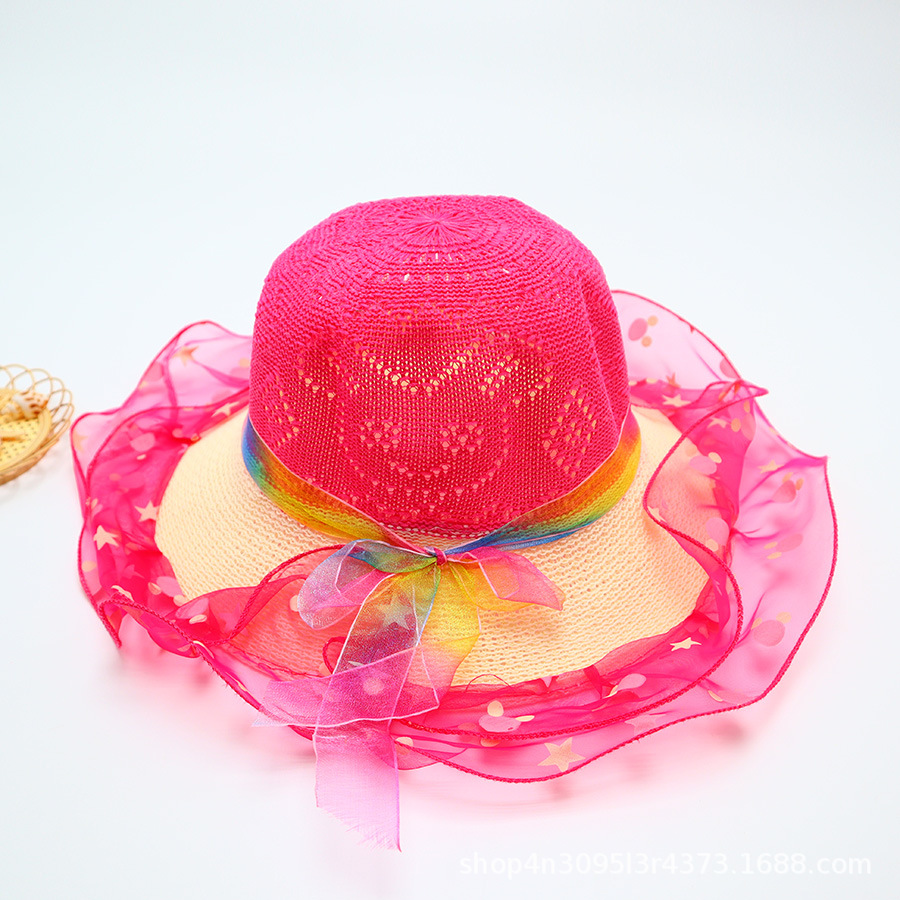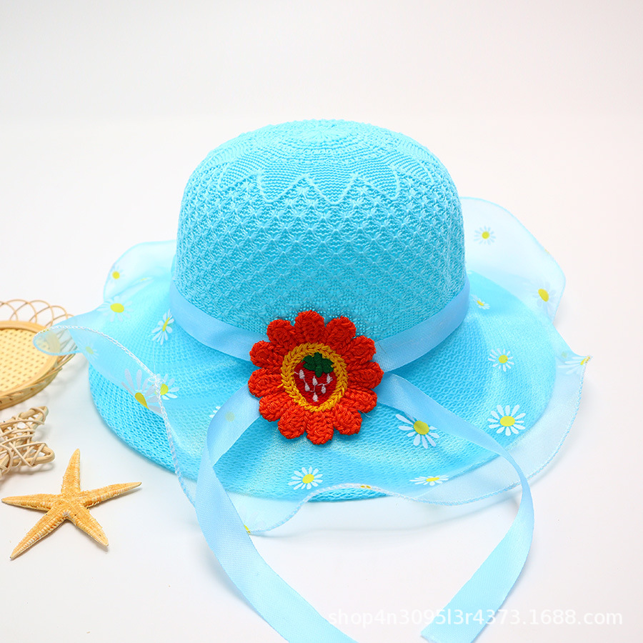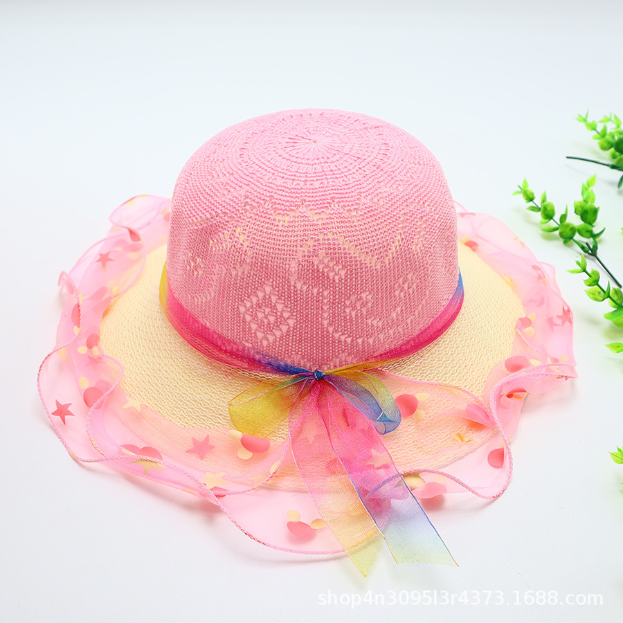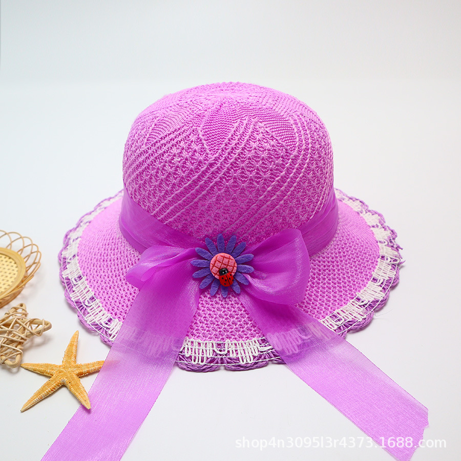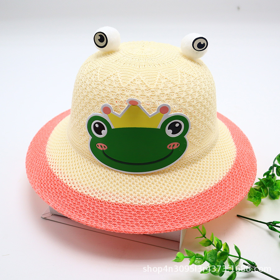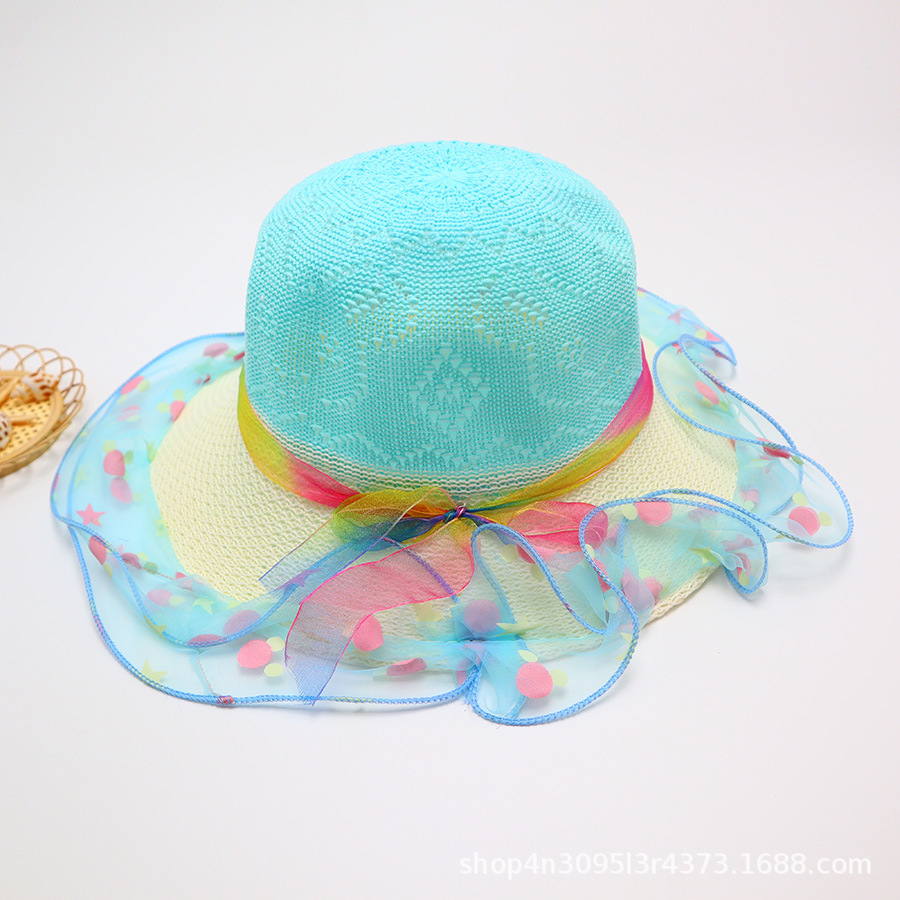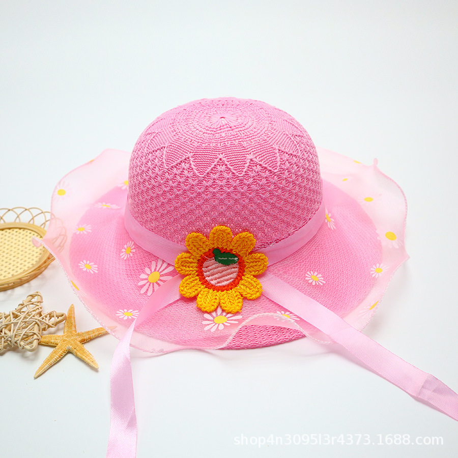 어린이용 밀짚모자, 통기성 좋은 모자, 큰 챙, 달콤하고 귀여운, 야외 휴가용, 자외선 차단, 소녀용 작은 공룡 밀짚모자
