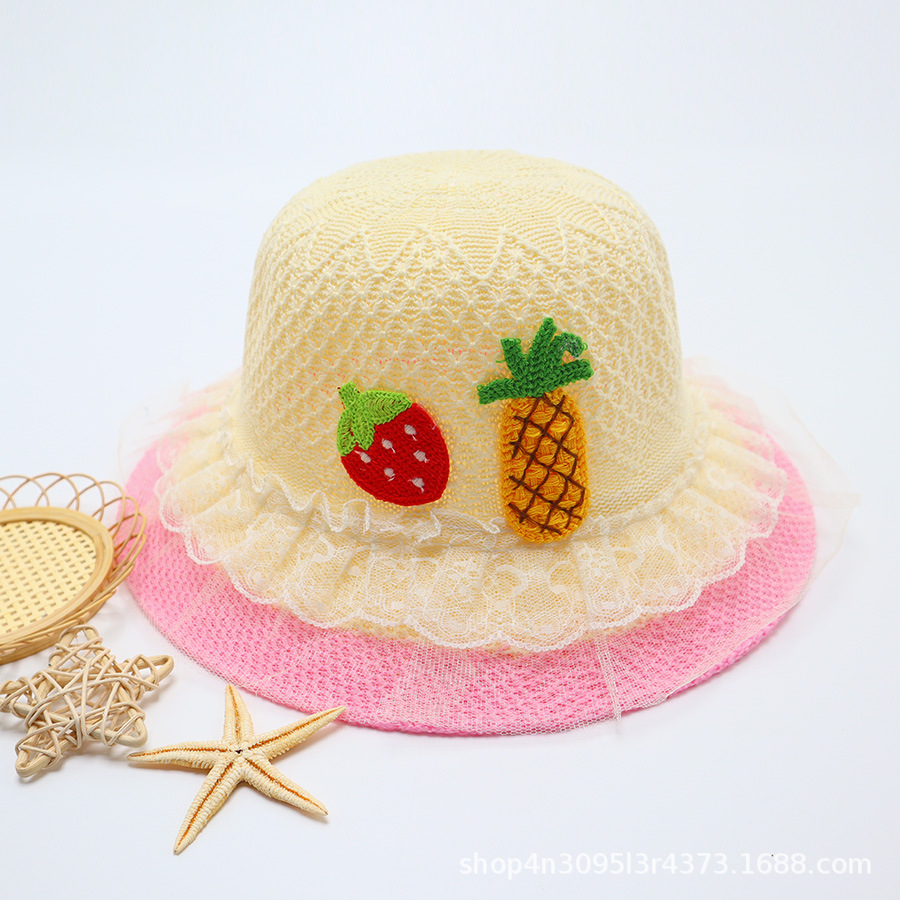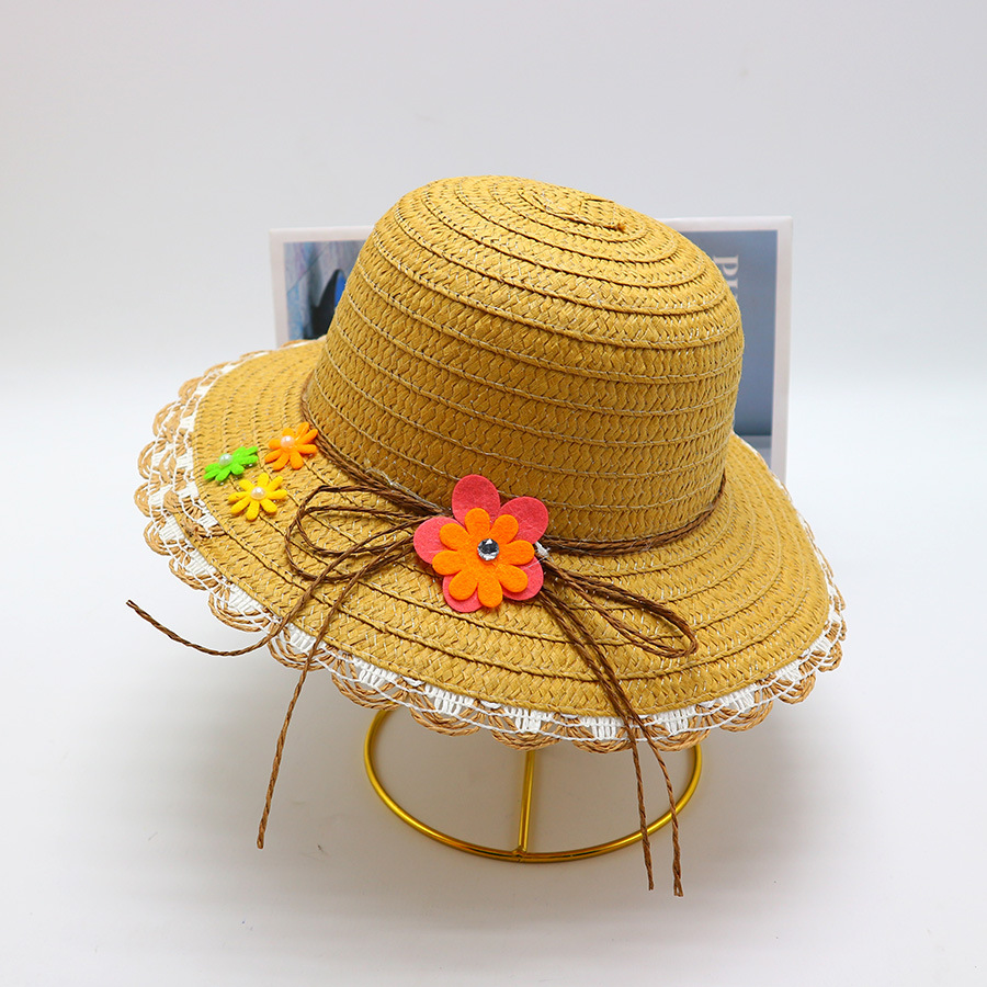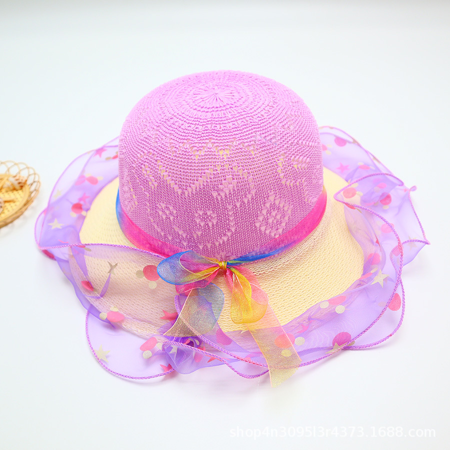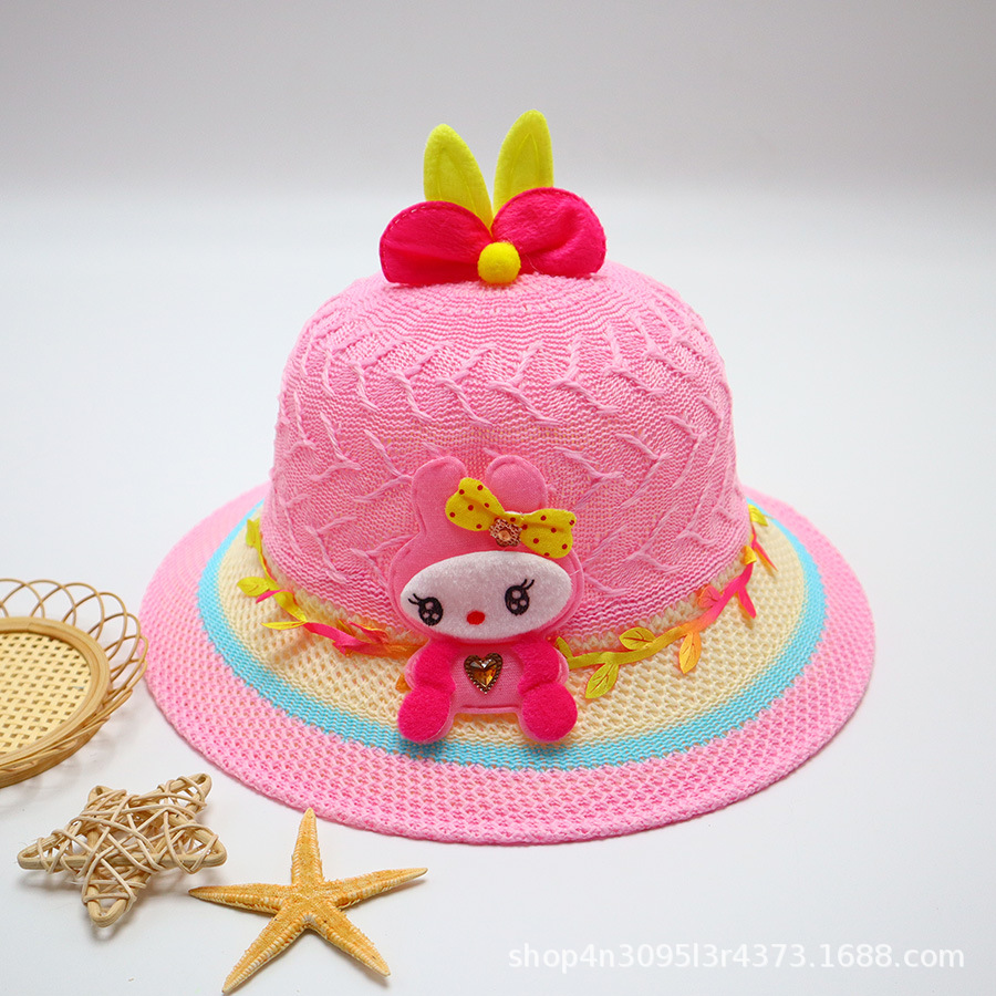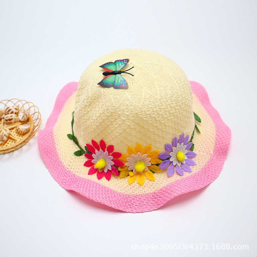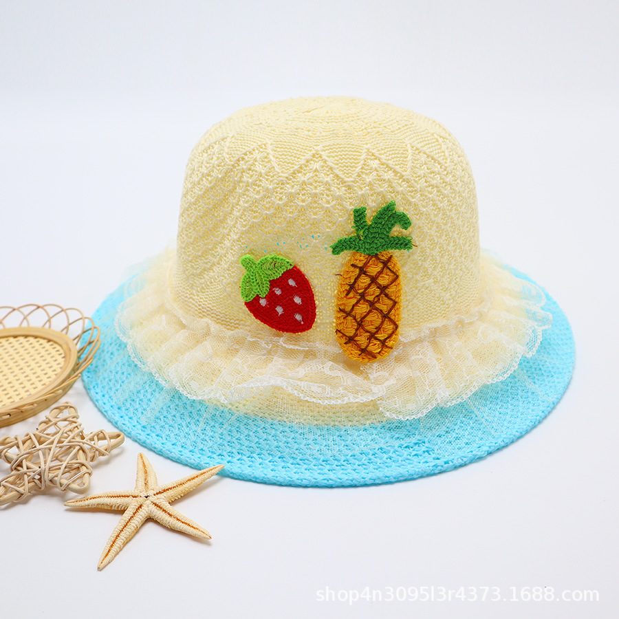 어린이용 밀짚모자, 통기성 좋은 모자, 큰 챙, 달콤하고 귀여운, 야외 휴가용, 자외선 차단, 소녀용 작은 공룡 밀짚모자
