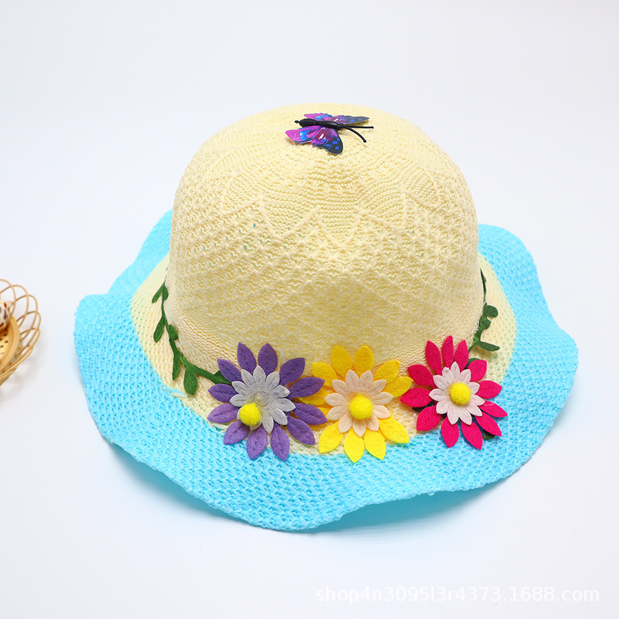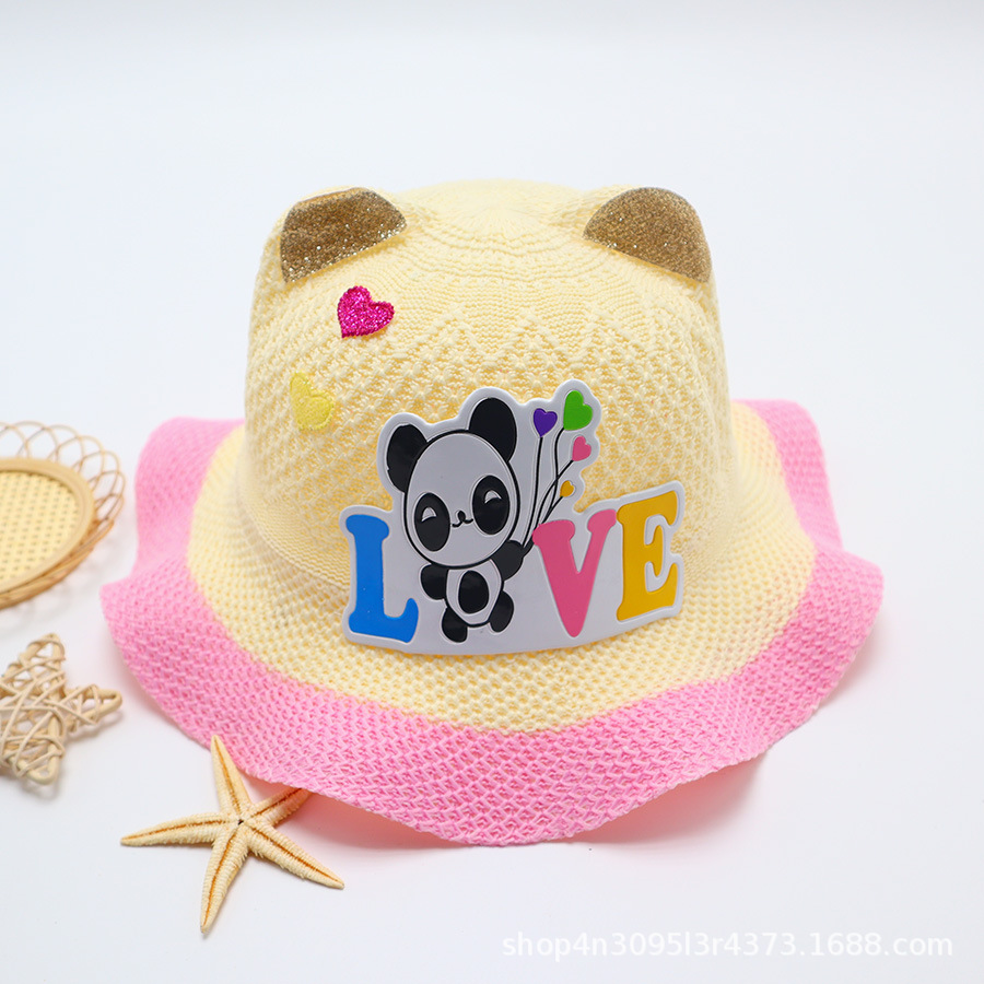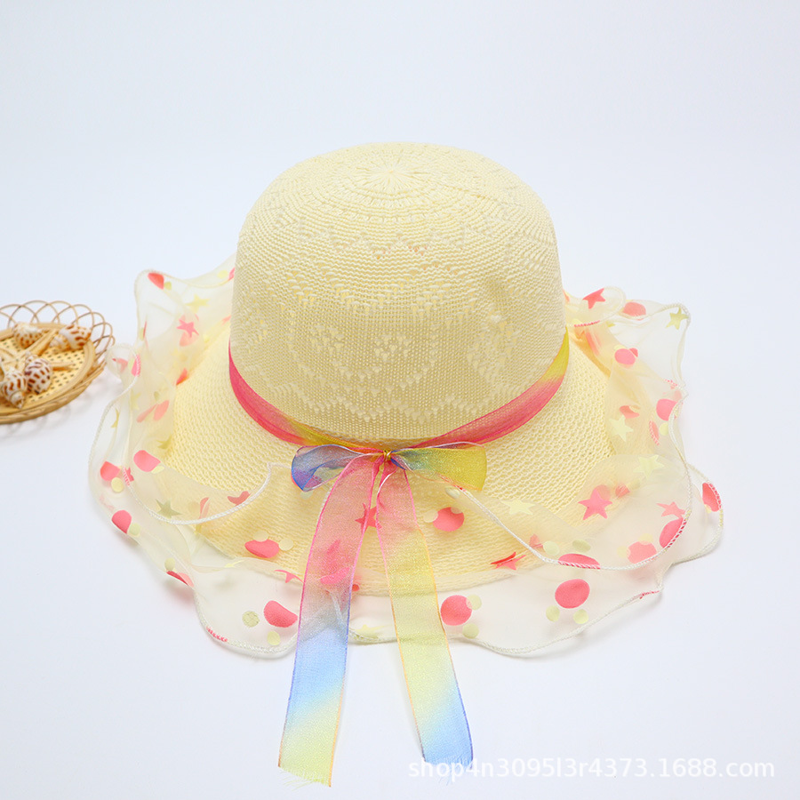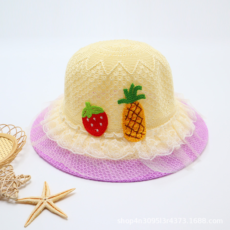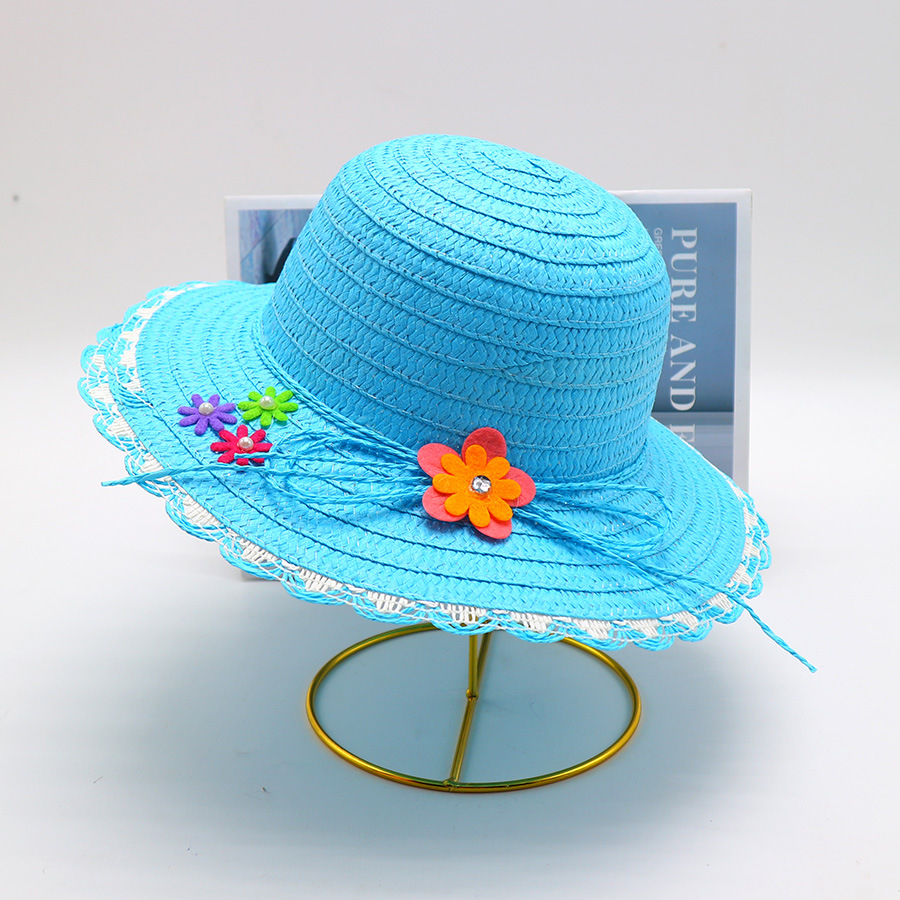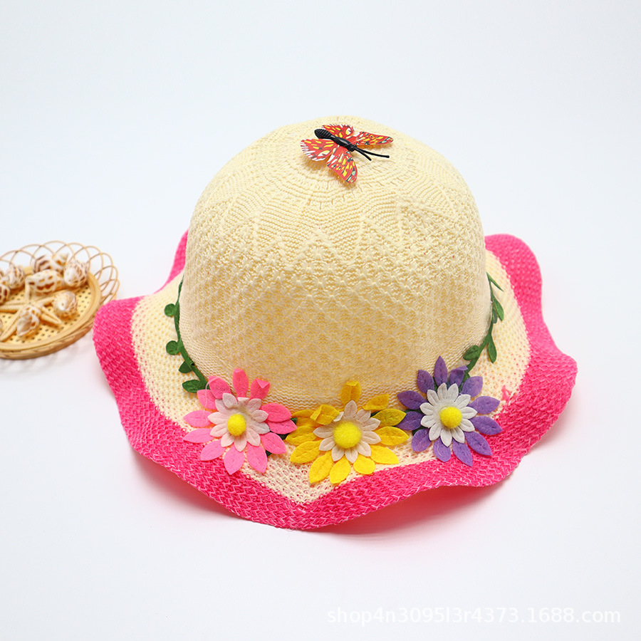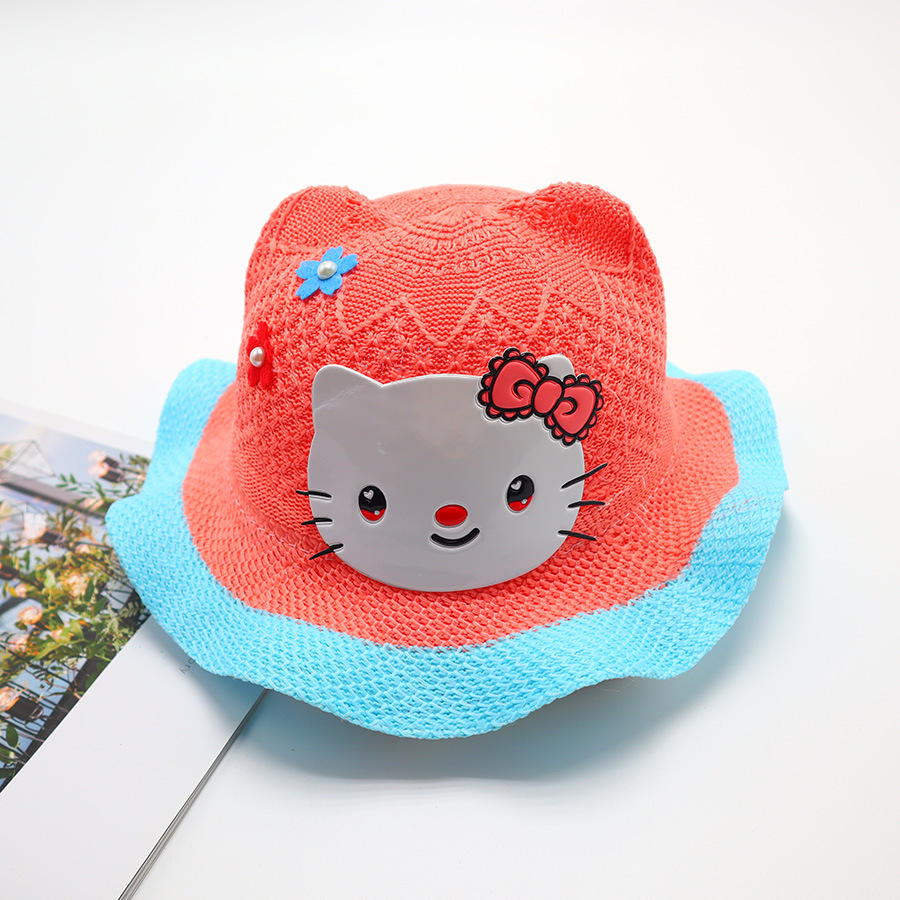 어린이용 밀짚모자, 통기성 좋은 모자, 큰 챙, 달콤하고 귀여운, 야외 휴가용, 자외선 차단, 소녀용 작은 공룡 밀짚모자