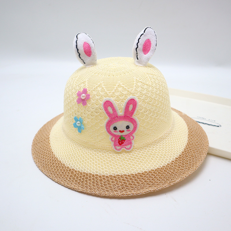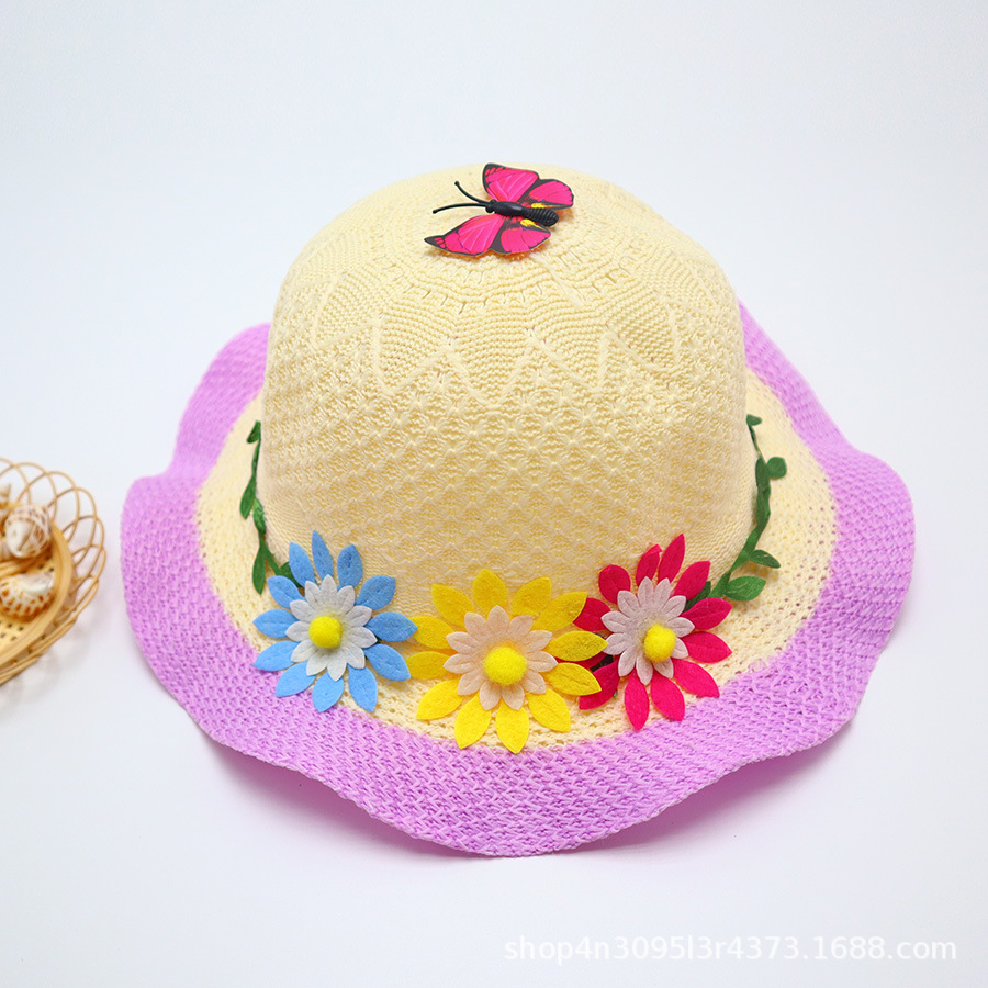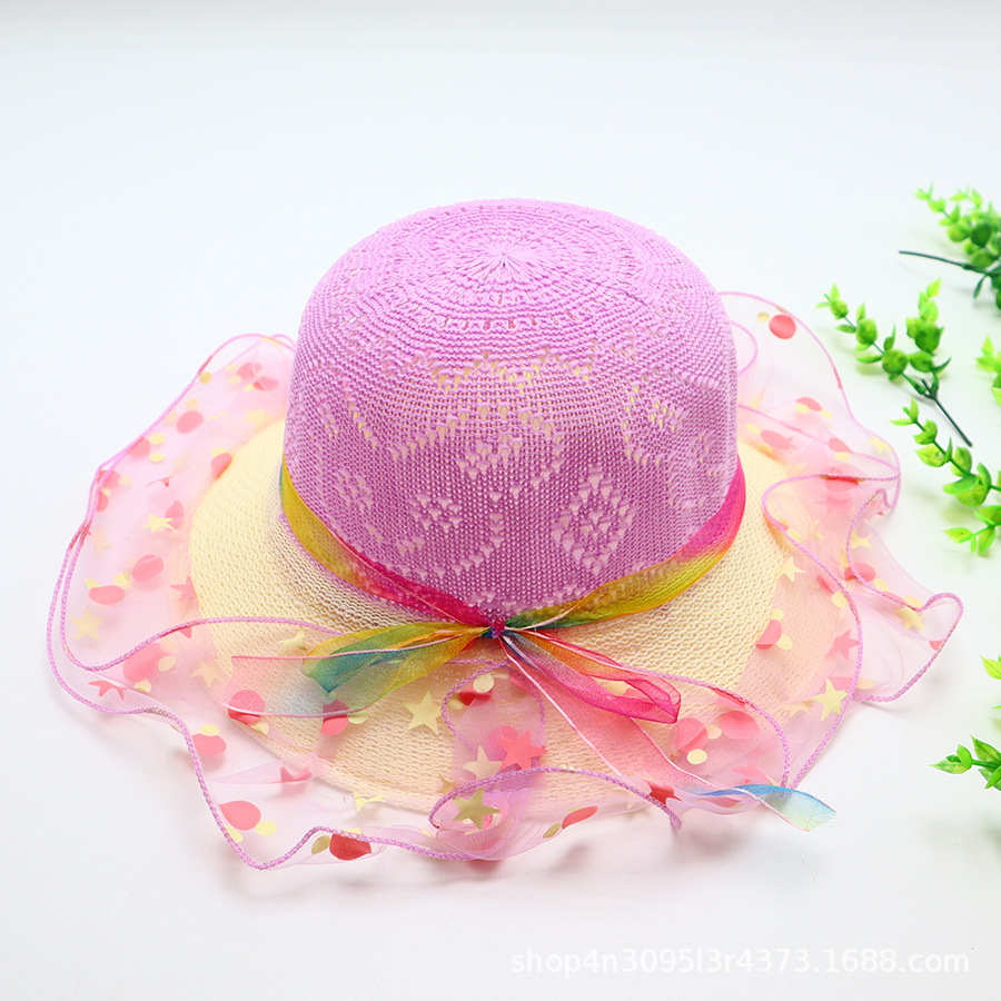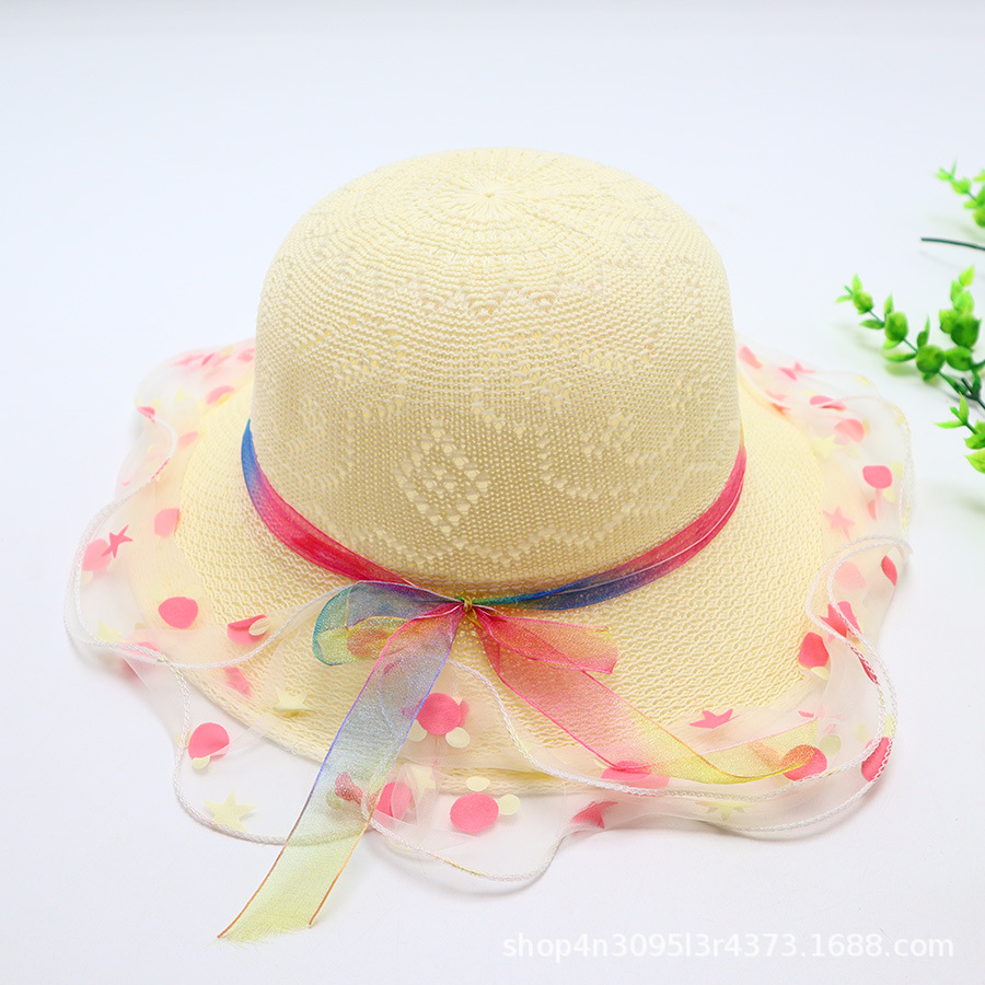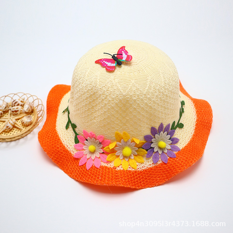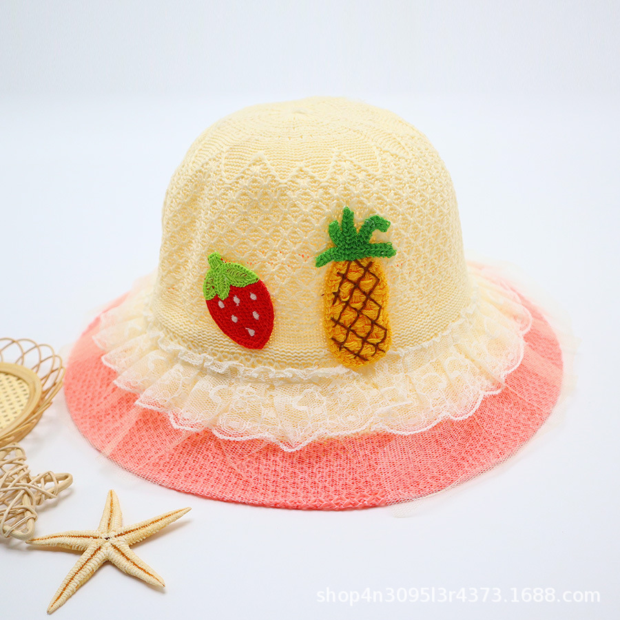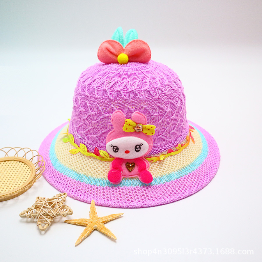 어린이용 밀짚모자, 통기성 좋은 모자, 큰 챙, 달콤하고 귀여운, 야외 휴가용, 자외선 차단, 소녀용 작은 공룡 밀짚모자
