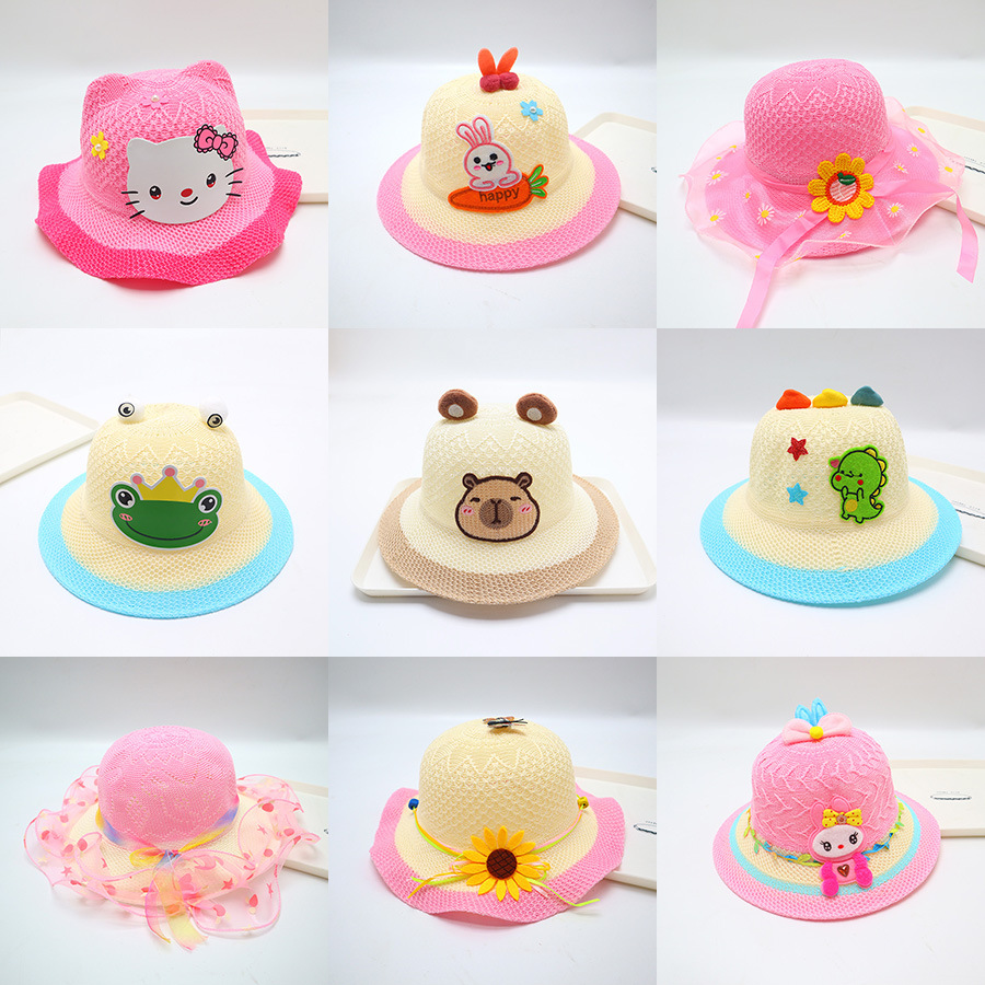 여름 어린이 밀짚모자, 자외선 차단 모자, 통기성 좋은 큰 챙, 달콤하고 귀여운, 야외용 남아용 차양 밀짚모자, 여아용스토어 가기